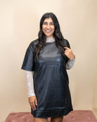 Step into bold elegance with the Lean on Me Dress. Crafted from sleek black leather, this short dress features flattering short sleeves that offer both comfort and style. Its modern cut enhances your silhouette, making it perfect for evening events or nights out. Embrace confidence and stand out effortlessly wherever you go.