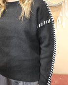 Wrap yourself in warmth with the Leave It To Me Sweater, crafted from substantial, insulating fabric designed to shield you from crisp weather. The classic black base pairs beautifully with striking white embroidery detailing along the sleeves, adding a distinctive touch that sets this piece apart. Perfect for layering or wearing solo, this sweater combines comfort with eye-catching style for those moments when you need reliable warmth without sacrificing personality.