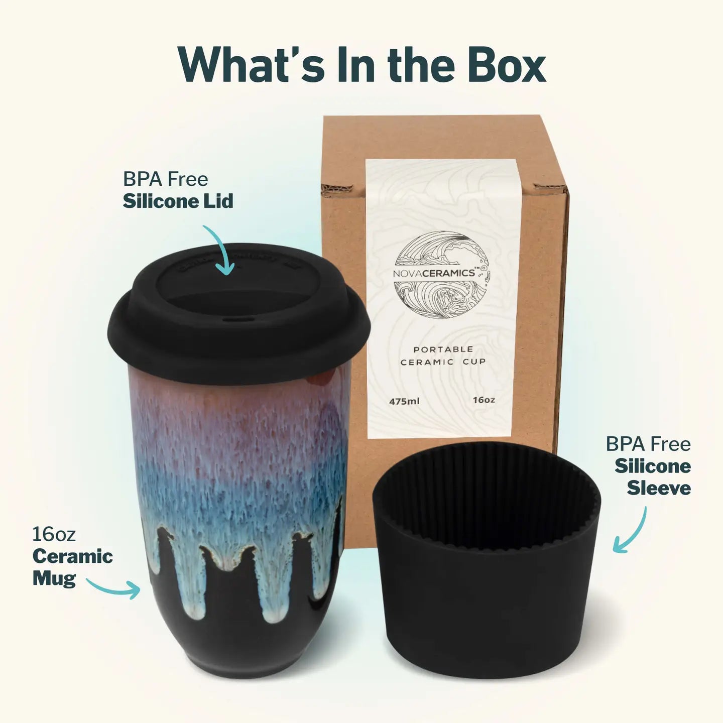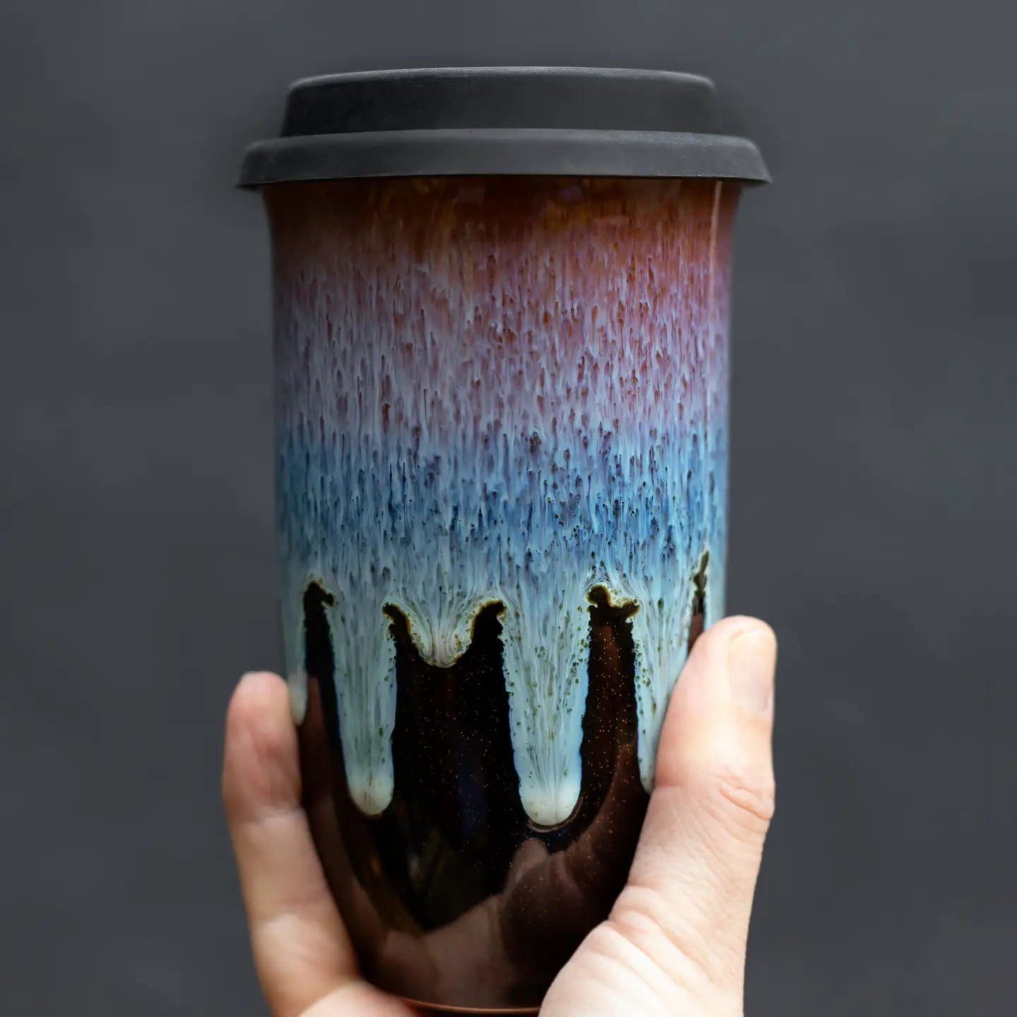 Handcrafted with sustainability and style in mind, our mugs are made from high-quality stoneware ceramic for a clean, pure taste. The BPA-free silicone lid and heat sleeve ensure a spill-resistant, comfortable grip on the go. No two pieces are exactly alike—making this a collector favorite.