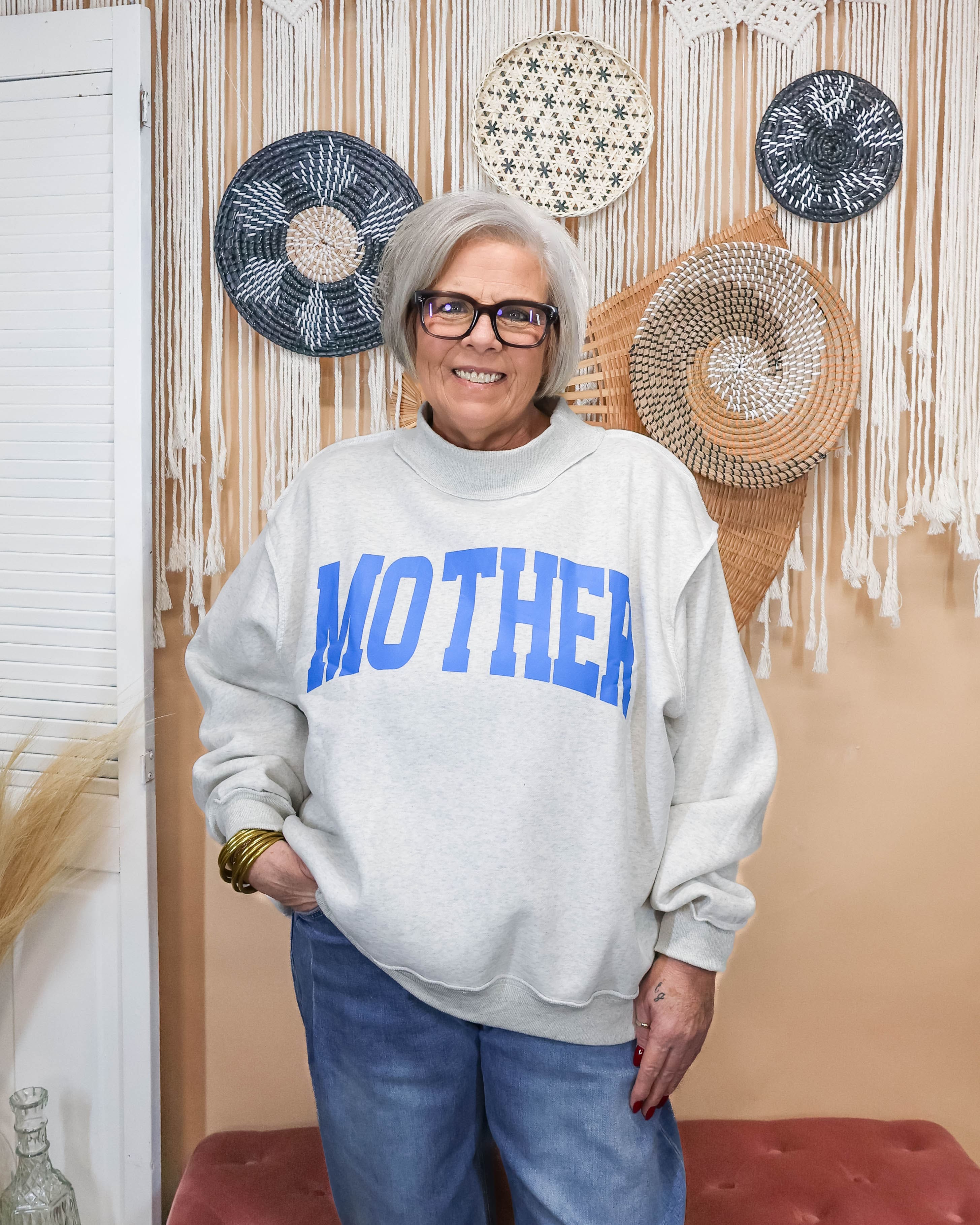Elevate your everyday style with this reversible graphic sweatshirt that lets you express two moods in one piece. Crafted in soft heather grey with a comfortable mock neck, this versatile layer features "cool mom" in cheerful butter yellow on one side and "mother" in serene ocean blue on the reverse. Flip it to match your vibe—whether you're channeling effortless confidence or embracing your nurturing side. Perfect for moms who refuse to choose just one identity, this sweatshirt combines comfort, playfulness, and meaningful design in a single wardrobe essential.