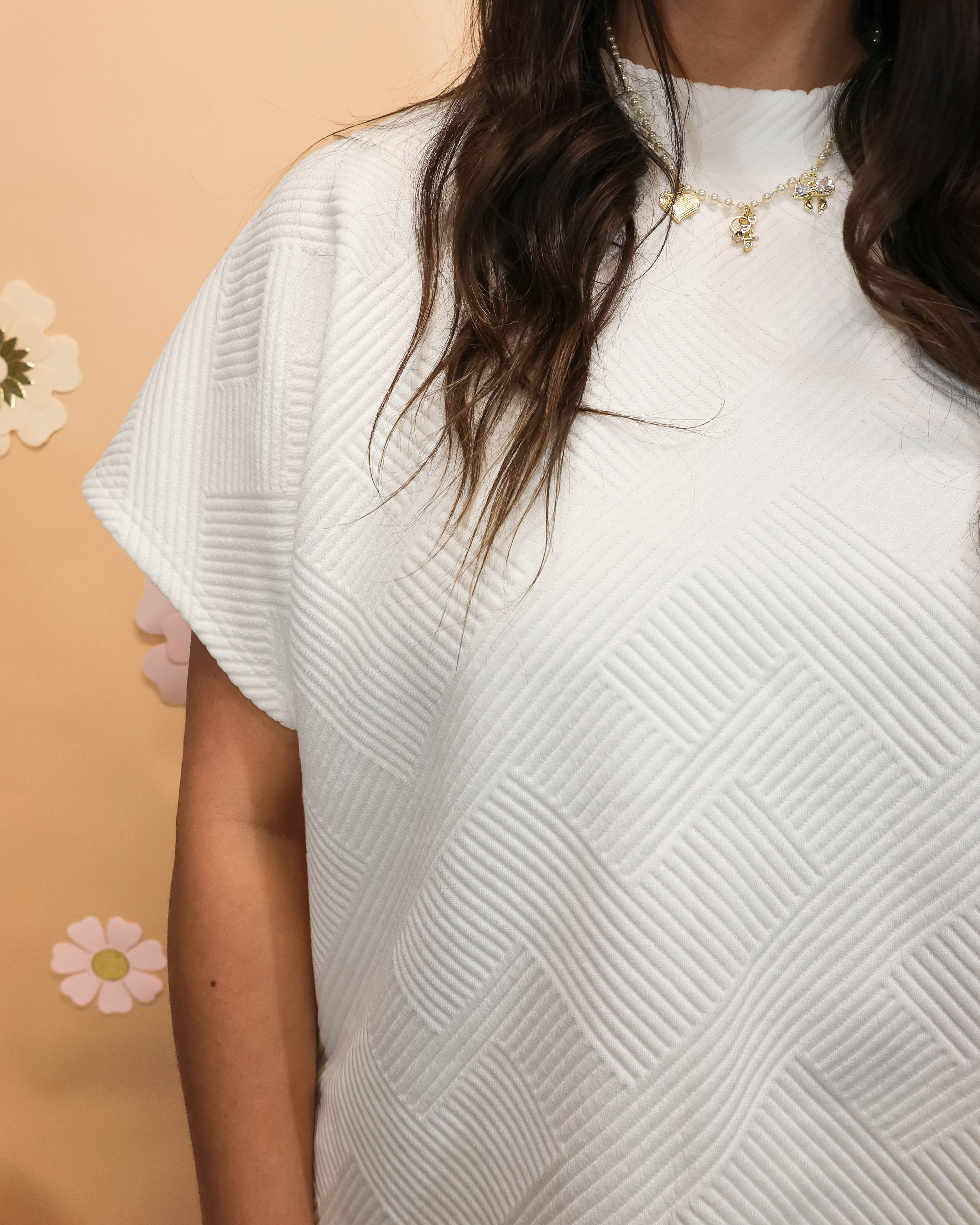 The No One Else Set is your secret to looking absolutely stunning. This chic white set features textured material with a playful zig zag pattern that adds dimension and interest. Mix and match the pieces with other tops and bottoms to create multiple looks from one fabulous set. Ideal for bridal outings and special occasions, it's the perfect way to feel confident, elegant, and ready for anything.