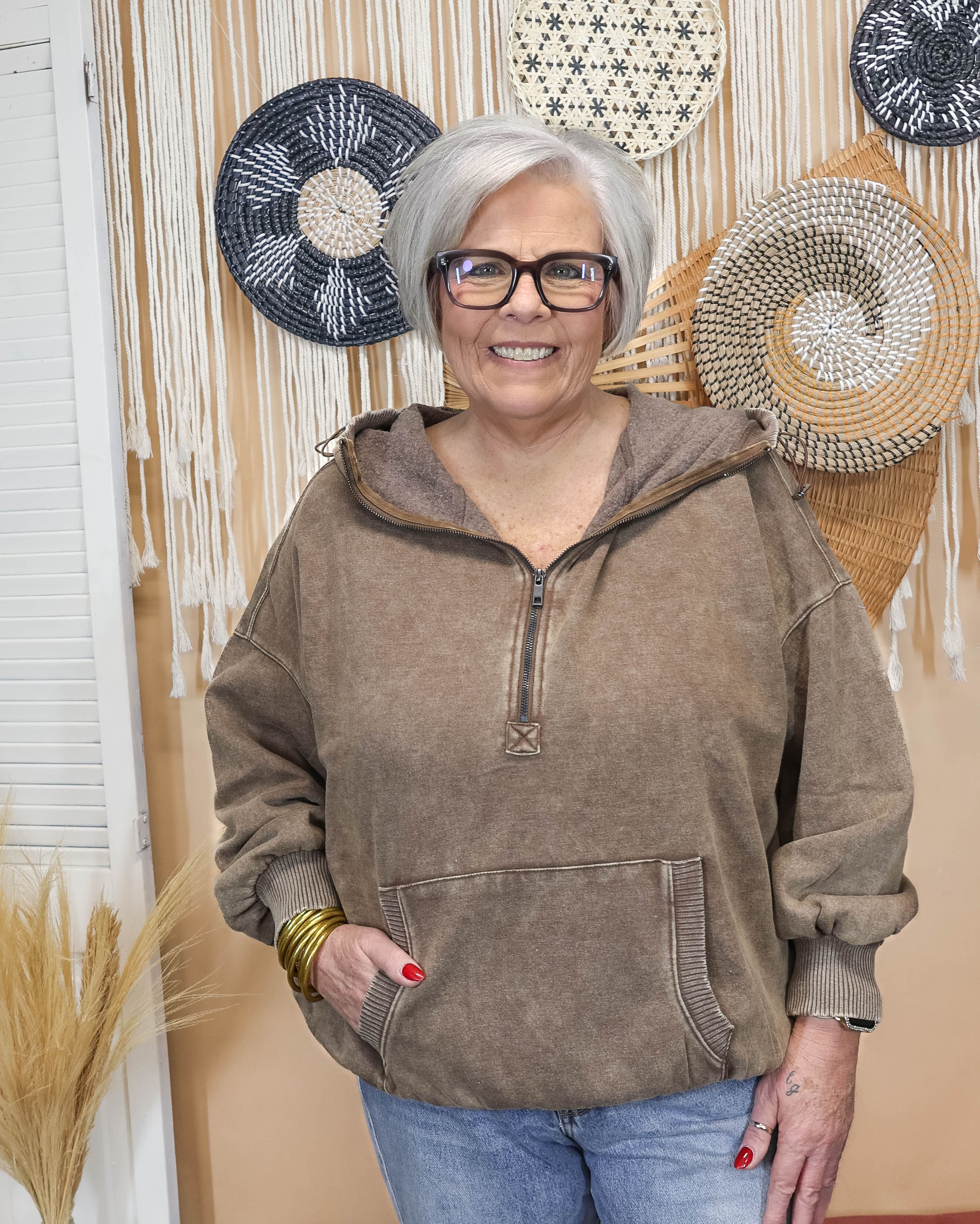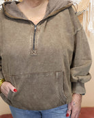Elevate your casual wardrobe with this stunning pink quarter zip sweatshirt that effortlessly blends comfort and style. Featuring a distinctive joey pocket perfect for keeping essentials close, the light acid wash gives it an edgy, lived-in aesthetic that feels fresh and modern. The cozy hood adds versatility for layering or extra warmth on cooler days. Whether you're running errands or meeting friends, this sweatshirt delivers the perfect balance of relaxed vibes and polished appeal. A wardrobe essential that works as hard as you do.