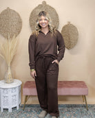 Experience ultimate comfort with the On Your Side Set in rich chocolate brown. Crafted from buttery soft fabric, this set features a stylish collared top paired with cozy jogger bottoms. Perfect for lounging or casual outings, it combines relaxed fit with effortless style to keep you feeling confident and comfortable all day long.