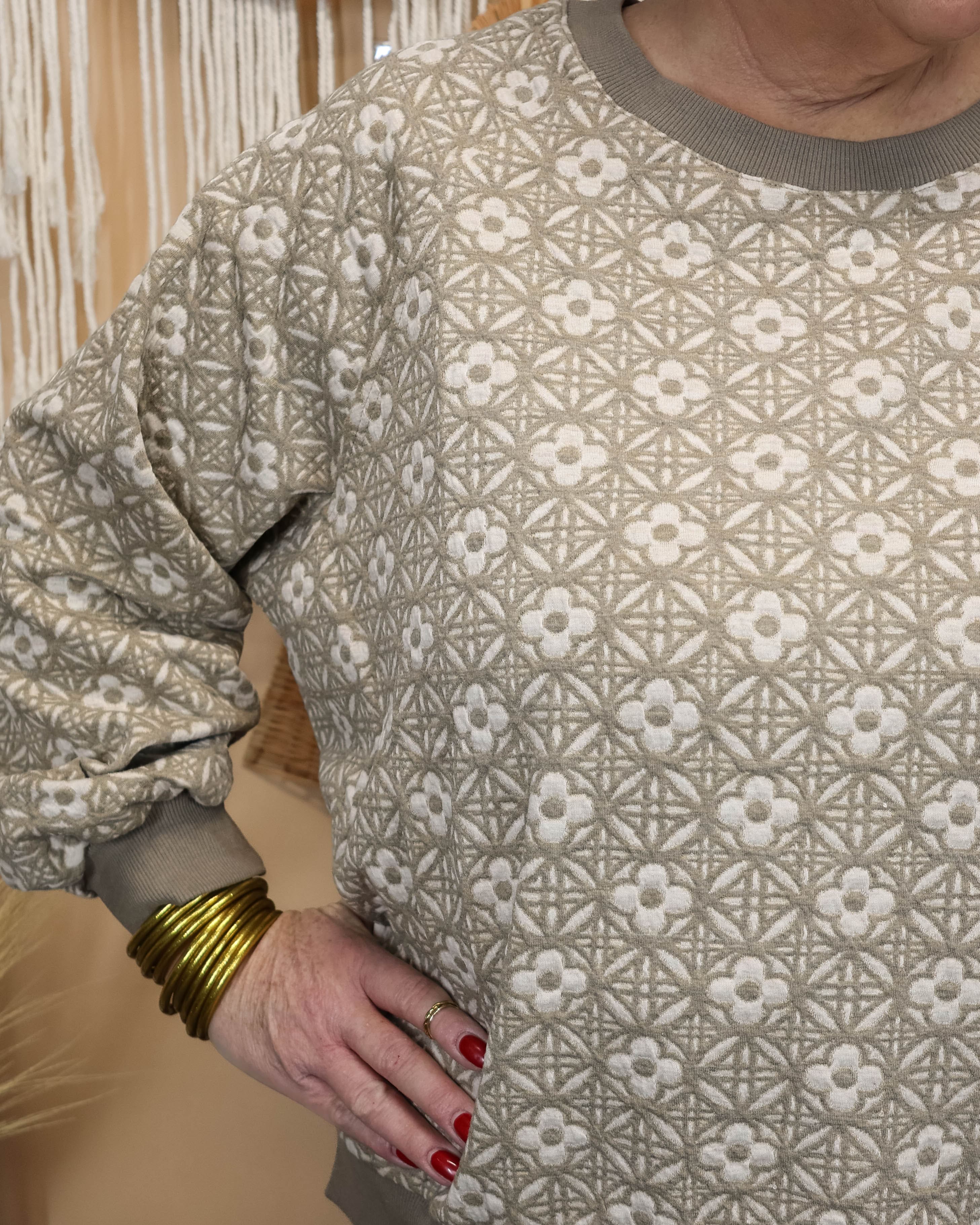 Elevate your everyday wardrobe with the Something More Sweater—a textured long sleeve that strikes the perfect balance between understated elegance and playful charm. Delicate flower details cascade along the front, adding visual interest to a neutral palette that pairs effortlessly with anything in your closet. The thoughtful texture creates dimension and depth, while the botanical accents give this classic piece an unexpected personality. Perfect for layering or wearing solo!