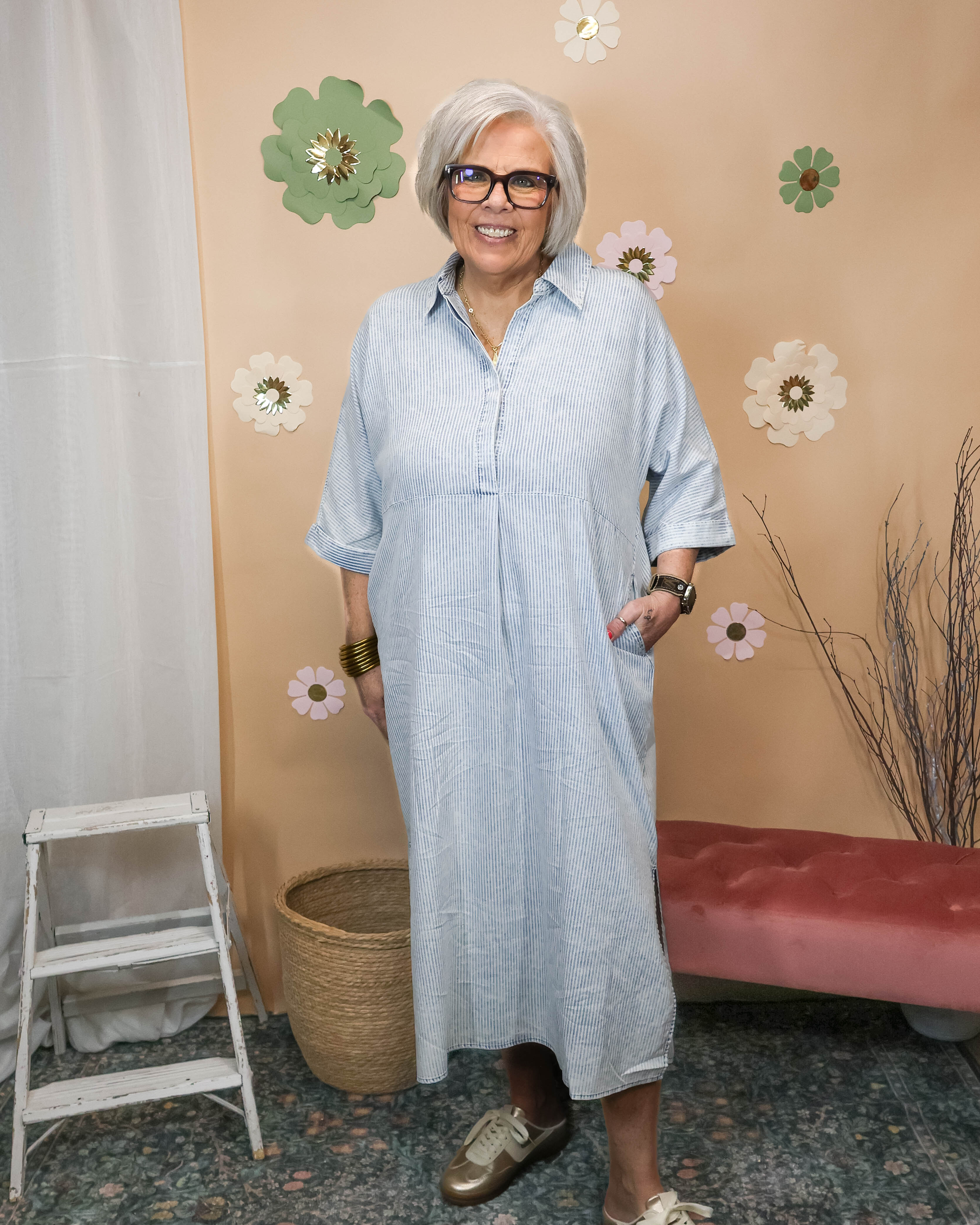 Rock that effortless cool with this acid wash striped midi dress. The classic button-up style and collar give it structure while half sleeves keep things breezy and laid-back. Perfect for dressing down with sneakers or dressing up for a day out!
