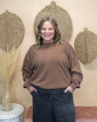 The Take It Out Top in Chestnut offers a charming, cozy look with its soft brown hue and long sleeves. Perfect for layering or wearing on its own, this top combines comfort and style in a simple, playful design you'll love for everyday wear.