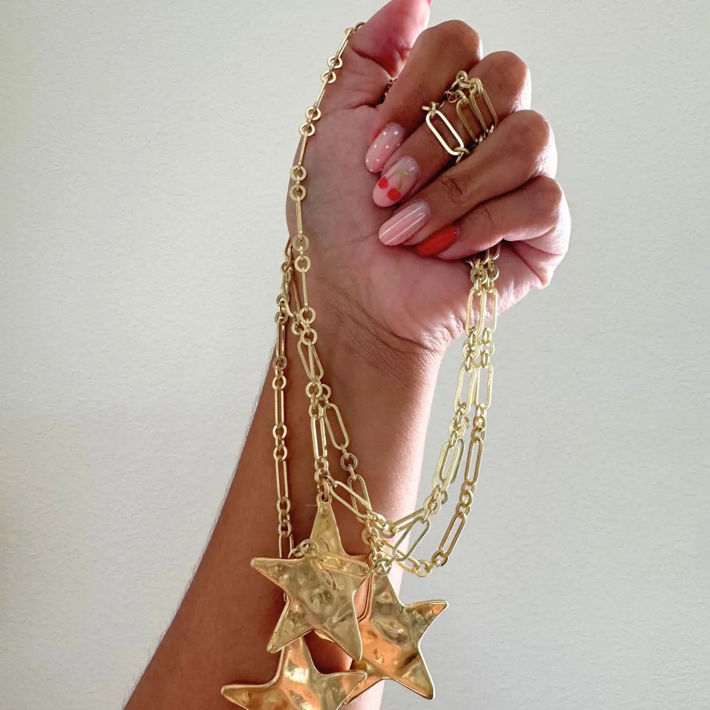 Bold, playful, and made to shine—the Goldie Star Necklace is your go-to statement piece. Featuring chunky detailing with star accents, this necklace adds personality and a fun edge to any outfit while still being easy to style.