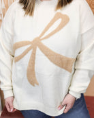 Elevate your everyday wardrobe with this charming bow-detailed sweater. Crafted in a lightweight knit, it features a striking white base with rich brown accents along the front, creating an effortlessly polished look. The versatile design transitions seamlessly from season to season, making it a smart investment piece that works year-round. Whether you're dressing up for the office or keeping it casual, this sweater delivers style without the bulk. A timeless addition that pairs beautifully with everything in your closet.