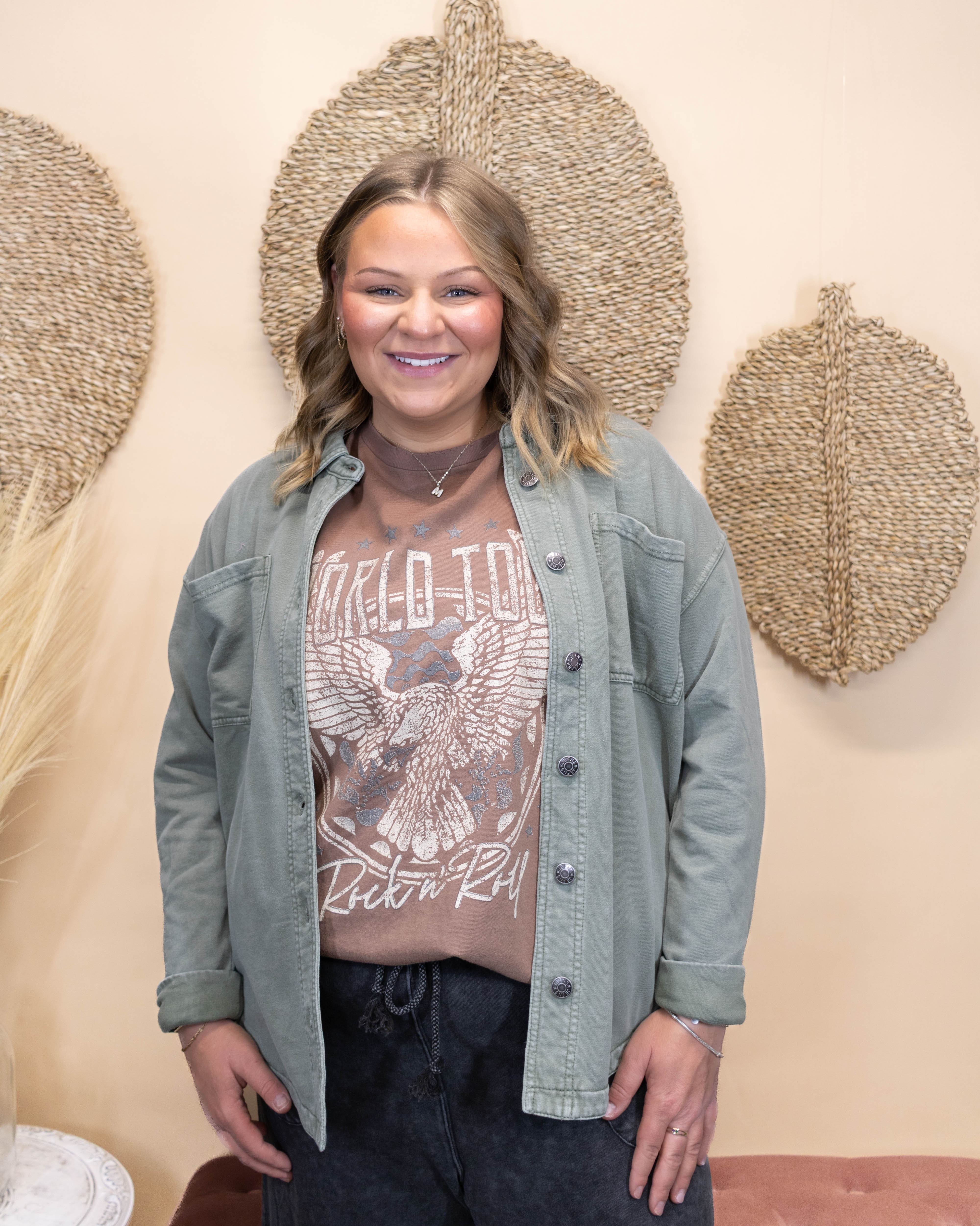 Stay effortlessly stylish with the Told You More Shacket in olive. This versatile piece features a rich olive green color, a classic collar, and dark buttons that add a touch of contrast. Perfect for layering, it combines the comfort of a jacket with the casual vibe of a shirt, making it an essential addition to your wardrobe.