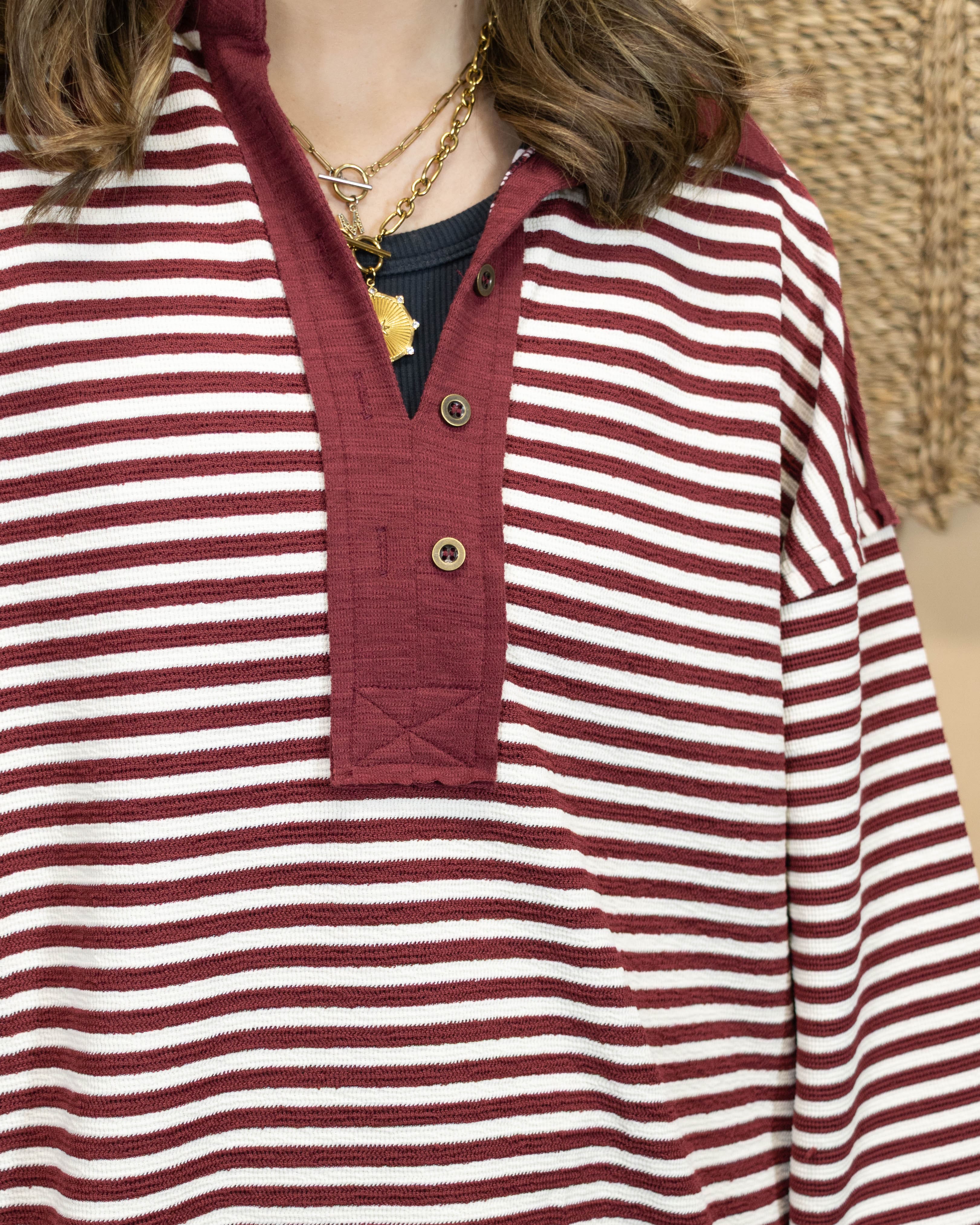 Experience effortless style and comfort with the "When You Are Top - Burgundy." This long-sleeve top features unique button details and wide sleeves, combining casual ease with a touch of fashion-forward design. Its soft, breathable fabric ensures all-day comfort, making it perfect for relaxed weekends or layering on cooler days. Elevate your everyday wardrobe with this versatile piece that blends comfort and style seamlessly.