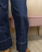 Experience comfort and style with the With Me Wide Leg Jean in dark denim. Designed for a flattering fit, these jeans offer tummy control to enhance your silhouette effortlessly. Their relaxed wide leg cut combines casual ease with a chic look, making them perfect for everyday wear. Stay comfy and confident wherever you go in these cute, versatile jeans.