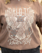 This brown graphic tee features a charming eagle design that adds a playful yet bold touch to your casual wardrobe. Made for comfort and style, it’s perfect for everyday wear or layered looks. Embrace a fun, adventurous vibe with a tee that stands out effortlessly.