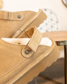 Step into comfort with the Brooke Clog in Hickory. This platform clog features a plush fuzzy interior that cradles your feet in warmth and softness, making it perfect for all-day wear. The sturdy platform sole provides excellent support and stability, while the cozy lining transforms every step into a treat for your feet. Whether you're running errands or relaxing at home, the Brooke delivers the perfect blend of style and cushioned comfort that keeps you feeling great from morning to night.