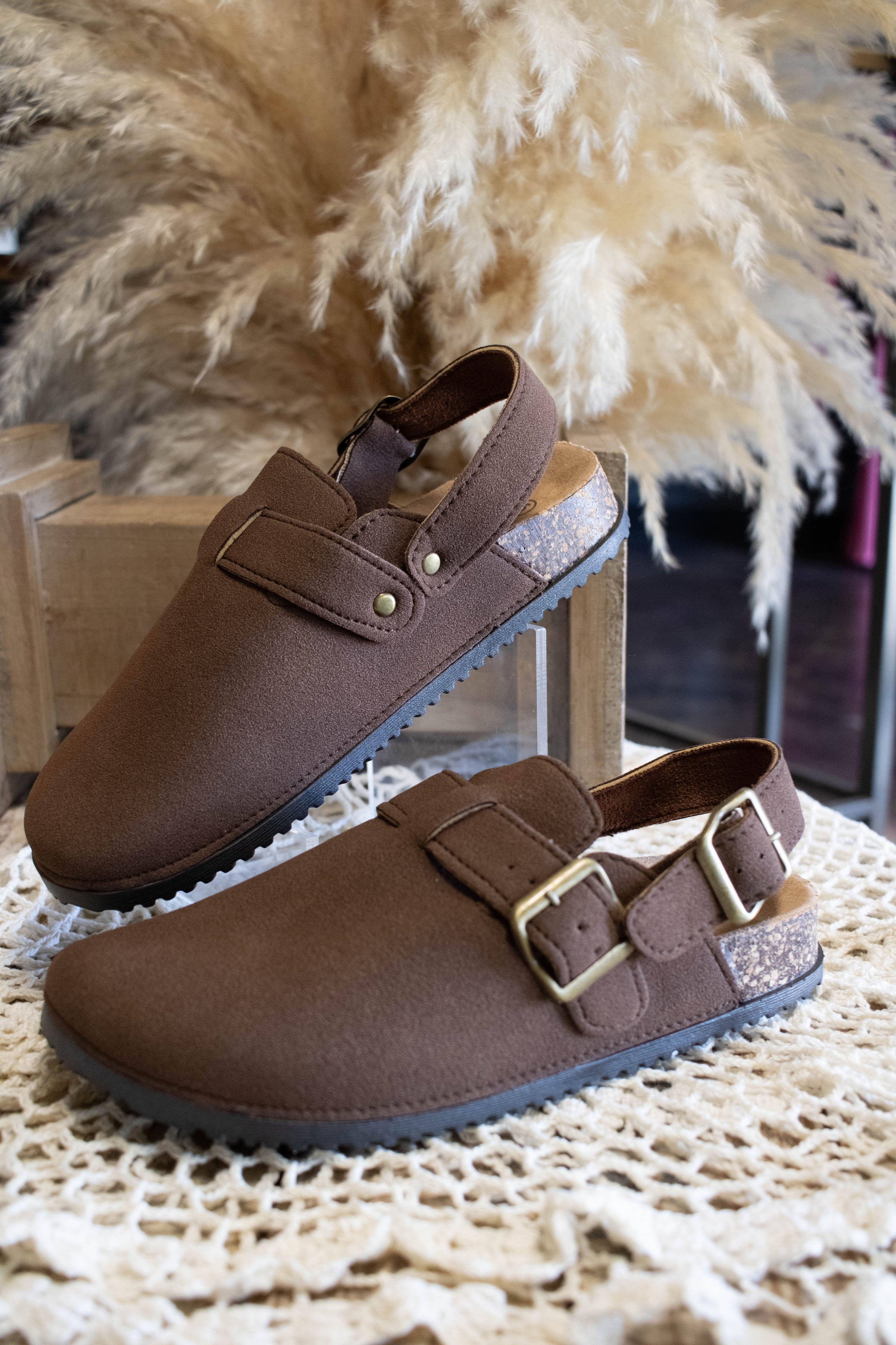 Step confidently in the Jenna Slingback Clog in rich coffee brown. Featuring a supportive back strap and a natural cork sole, this clog combines comfort with timeless style. Perfect for all-day wear, it offers stability and cushioning that keep you moving with ease and confidence. Elevate your footwear collection with this versatile, durable design that pairs effortlessly with any outfit.