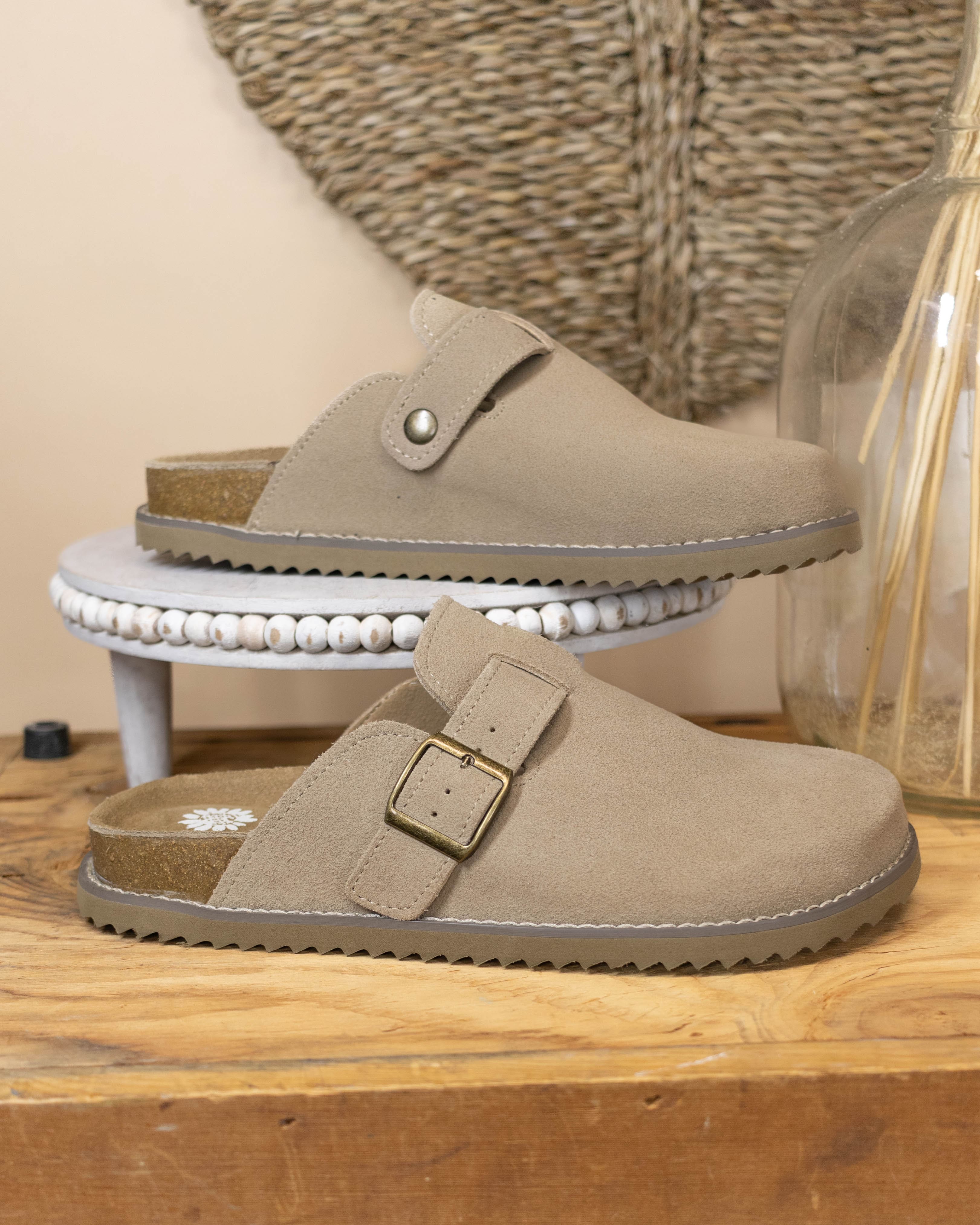 The Maible Clog in Taupe combines comfort and durability with its lightweight suede design and adjustable strap for a perfect fit. Featuring a cushioned heel and sturdy sole, these clogs provide support and all-day wearability while maintaining a stylish, versatile look.