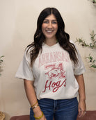 Celebrate tradition with the Arkansas Razorbacks Club Graphic Tee. This off-white top features a bold red Razorback logo and the number 71, honoring the year of the team's establishment. Combining classic style with comfortable wear, it’s perfect for showing your Razorbacks pride with a nod to history.