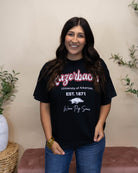 The Arkansas Razorbacks Letterman Graphic Tee features a sleek black design with bold white lettering outlined in red for a standout look. A small Razorback logo adds a subtle touch of team pride. Crafted for comfort and style, this tee is perfect for fans who want to showcase their Razorbacks spirit with a modern edge.