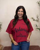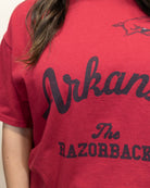 Make a bold statement with the Arkansas- The Razorbacks Graphic Tee. This red tee features a striking black Razorback logo graphic, combining classic team spirit with a sleek, modern look. Crafted for comfort and style, it’s perfect for showing your Razorbacks pride wherever you go.