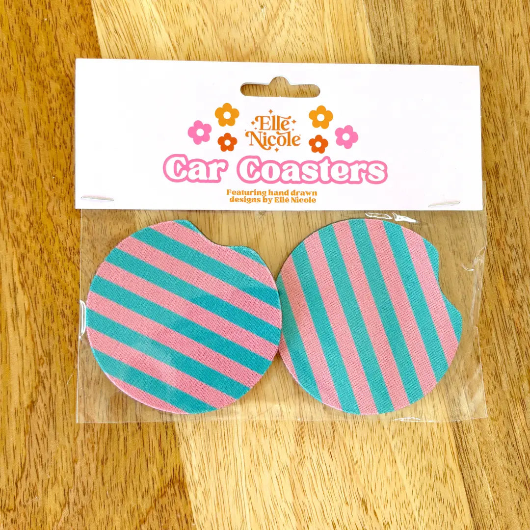Keep your car looking cute and clean with our Car Cupholder Coasters! These coasters catch all the nasties and dust, while adding a touch of style to your cup holders. Pair them with our car air fresheners for the full look! Made from a light weight neoprene material.
