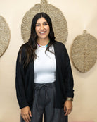 The Catch Feelings Cardigan is your go-to for effortless comfort and casual style. This simple black cardigan features cozy fabric and convenient pockets, perfect for everyday wear. Whether layered over your favorite outfit or worn on its own, it keeps you feeling relaxed and looking polished.