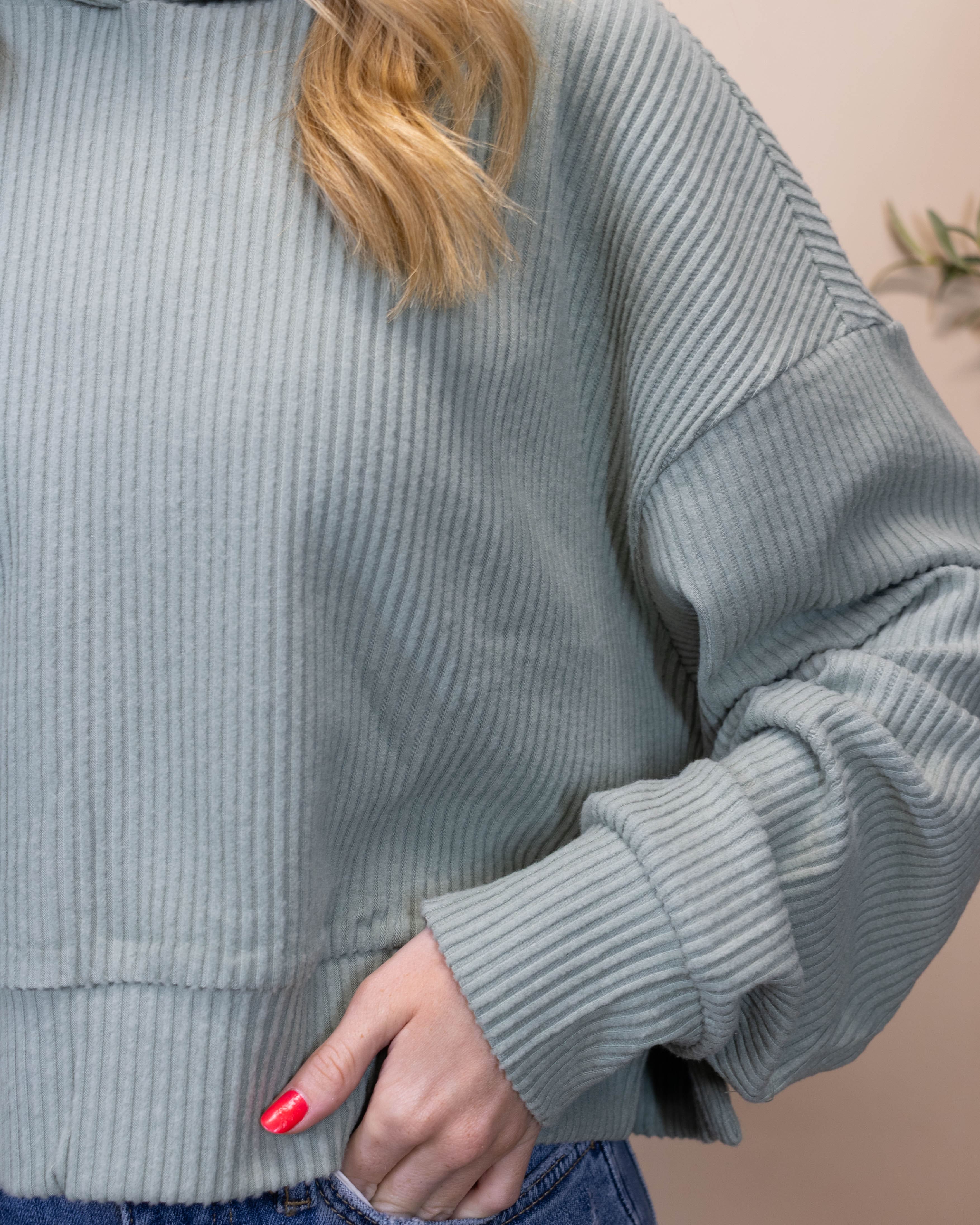 Experience ultimate comfort with the Chase The Feeling Hoodie, made from soft textured material that feels cozy against your skin. Its cropped design and oversized sleeves create a trendy, relaxed look, while the cuffed wrists add a polished finish. Complete with a hood, this hoodie is perfect for layering and elevating your casual style effortlessly.