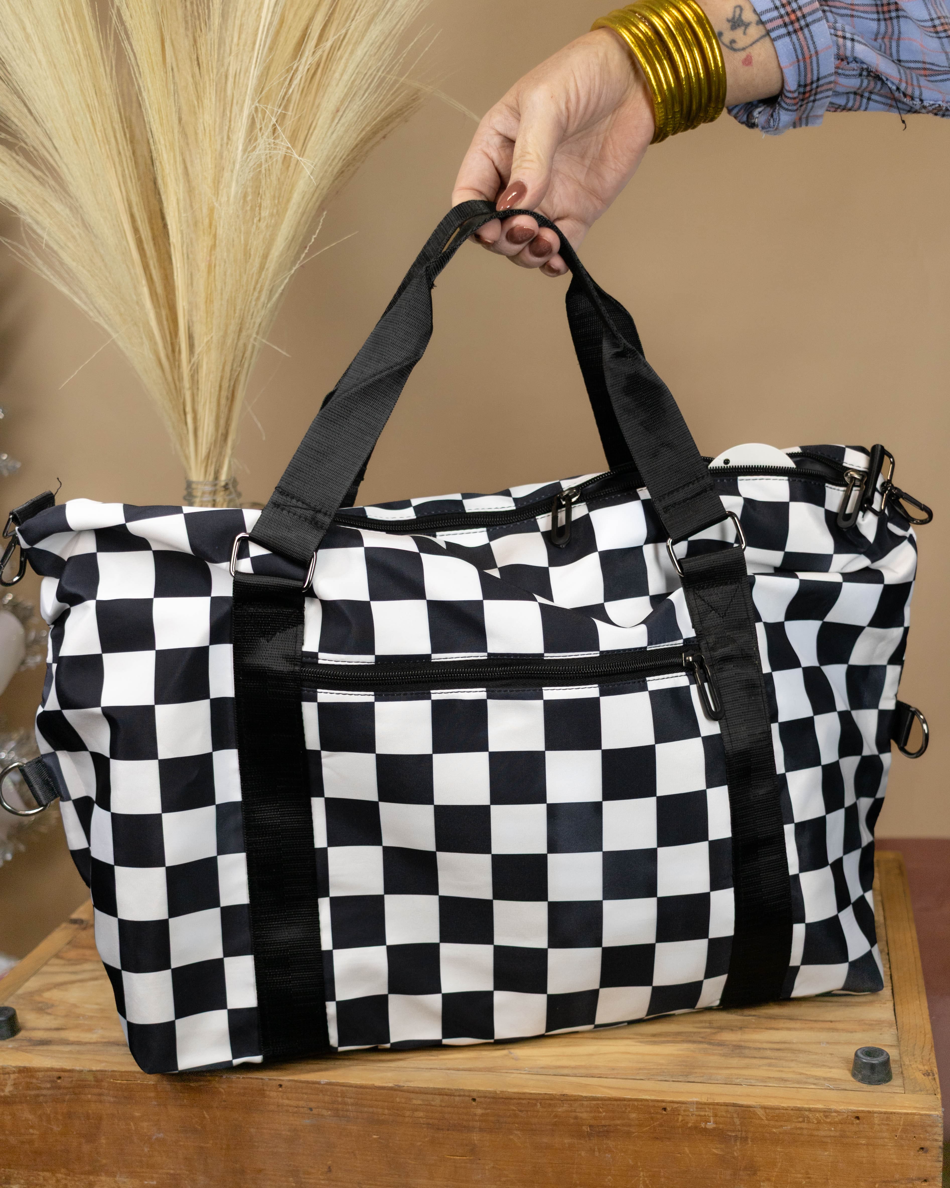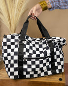 Elevate your everyday style with the Check This Tote Bag in Black. Featuring a subtle black checkered pattern, this tote combines durability with a sleek look, perfect for carrying essentials with ease. Its spacious interior and sturdy handles make it ideal for work, errands, or casual outings, providing both function and fashion in one versatile accessory.