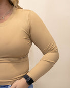 Experience the comfort of our best-selling tanks and tees now in a long sleeve version. This Crew Neck Basic Long Sleeve Tee features super stretchy, soft fabric that resists wrinkles, making it perfect for travel and effortless wear. Designed in one size to suit every body, it combines ease and style for your everyday wardrobe. Great for layering!
