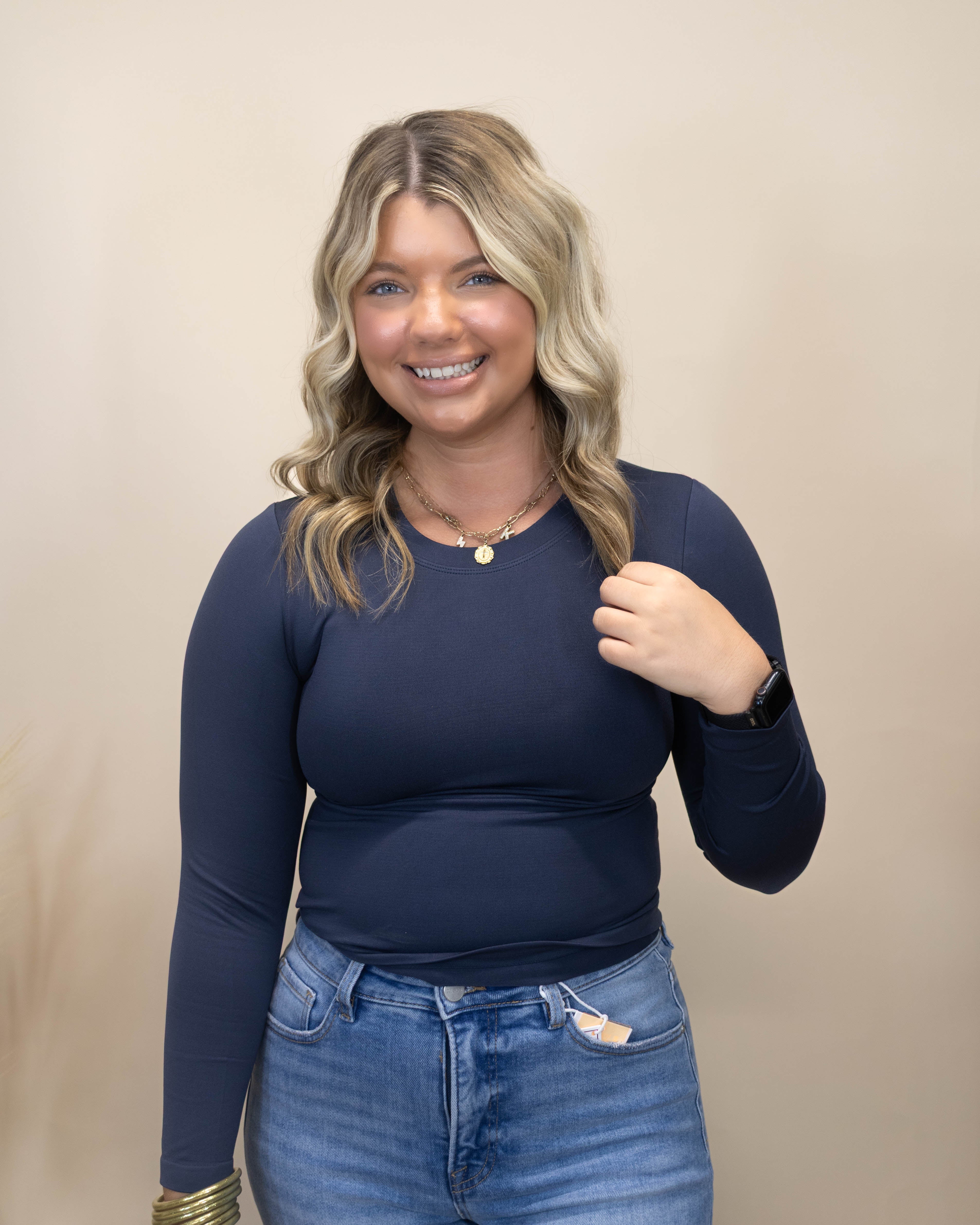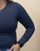 Crew Neck Basic Long Sleeve Tee- Navy