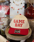 Show your game day spirit with the Game Day Trucker Hat. Combining a classic tan front with a bold red mesh back, this hat offers both breathability and style. The adjustable strap ensures a comfortable, customized fit, while the embroidered lettering adds a premium touch. Perfect for cheering on your team or adding a sporty edge to your everyday look.