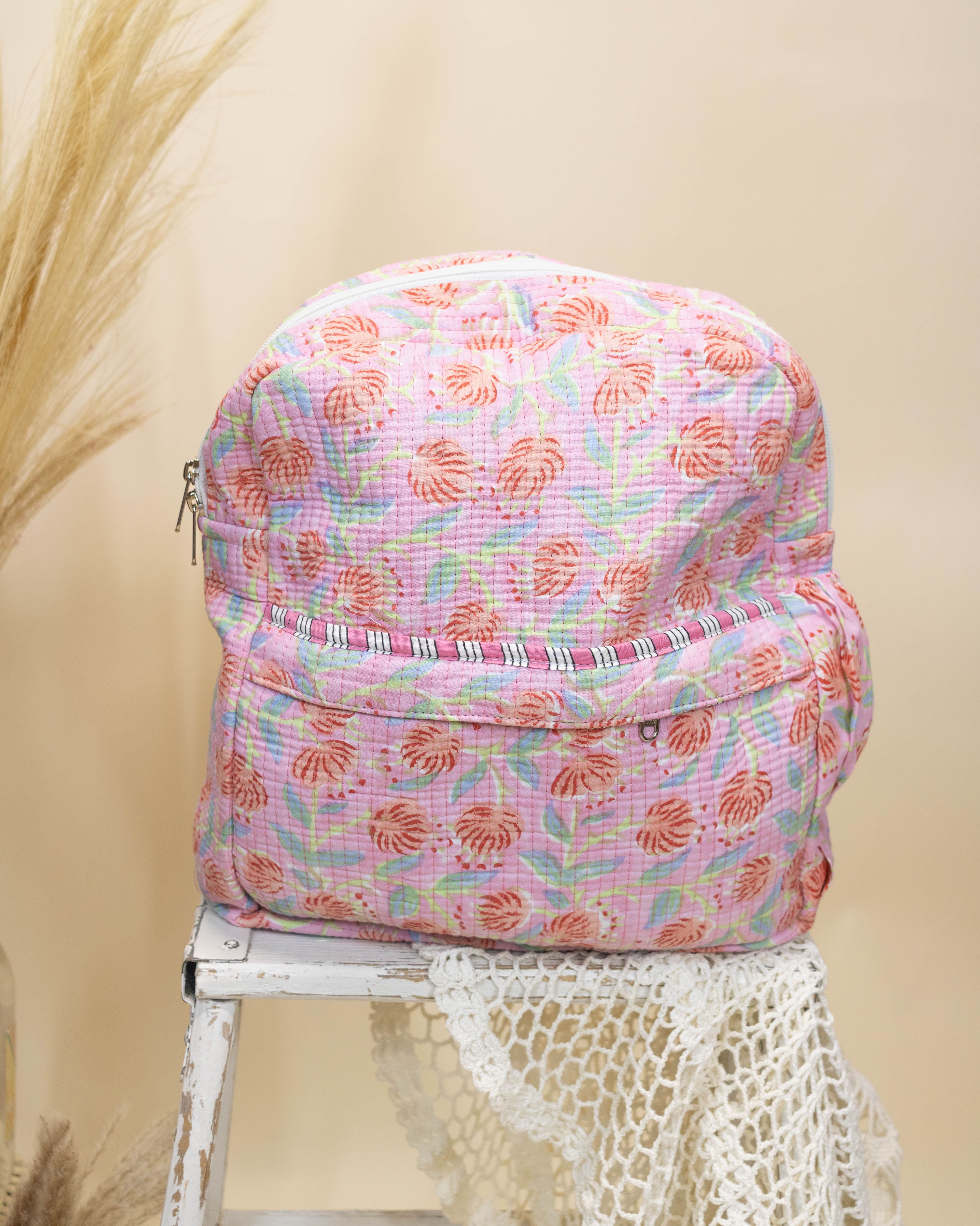 Elevate your everyday style with the Georgina Pink Floral Quilted Backpack. Its soft pink hue and delicate quilted design offer a feminine touch while providing practical storage for all your essentials. Lightweight yet durable, this backpack combines fashion and function, making it perfect for school, work, or weekend adventures. Stay organized and stylish effortlessly with this charming accessory.