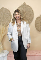 Elevate your professional wardrobe with the Here We Are Blazer, a classic and timeless beige piece designed for effortless business casual style. Its versatile shade and tailored fit make it perfect for transitioning from office meetings to after-hours events, ensuring you always look polished and confident. Crafted to complement a variety of outfits, this blazer brings a refined touch to your everyday ensemble.
