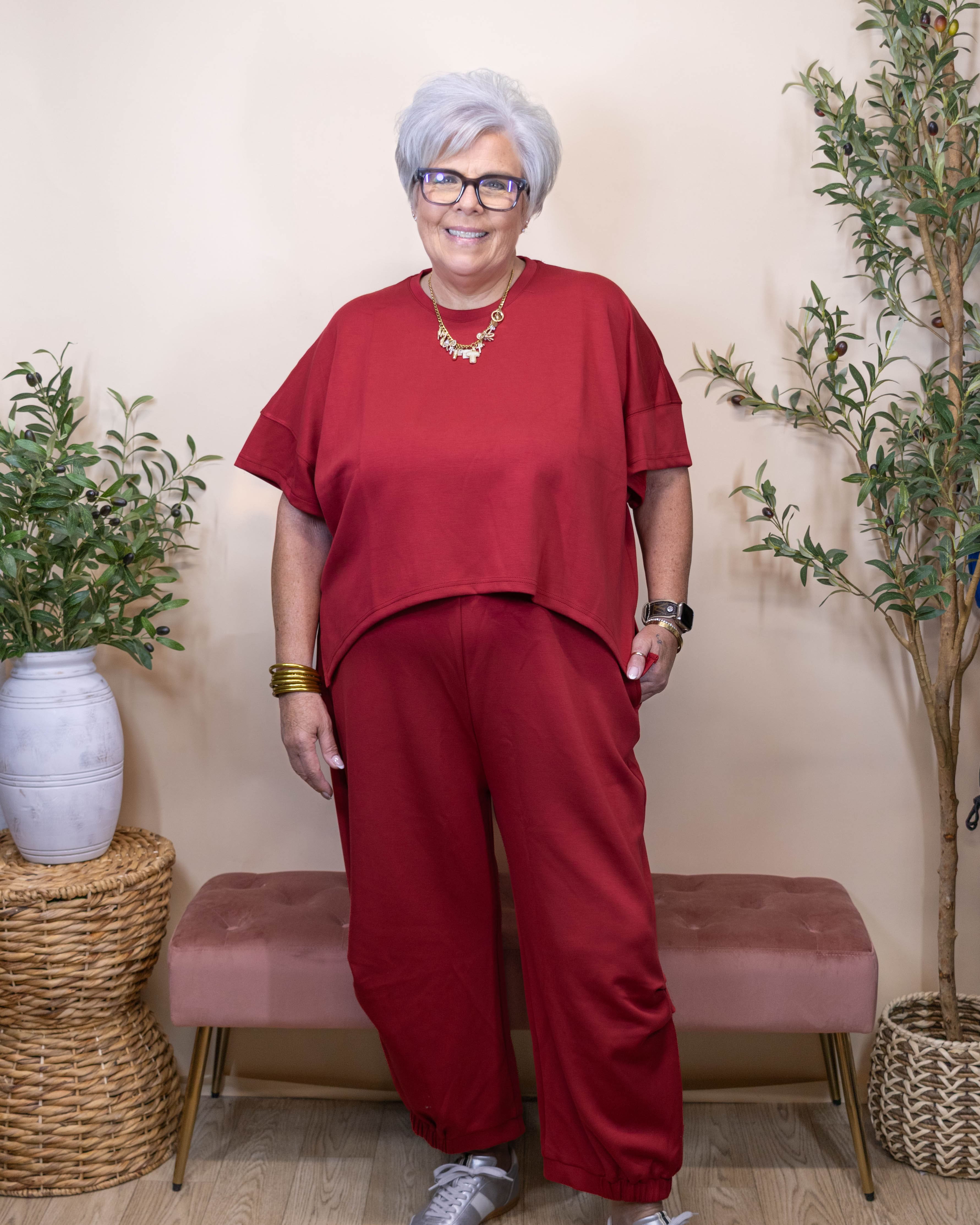 Experience comfort and style like never before with the Here We Are Set. This elevated two-piece features a jogger-style bottom paired with a high-low top crafted from soft scuba material, ensuring a perfect fit and plush feel. Designed for effortless wear, it blends casual ease with a modern edge, making it ideal for lounging or stepping out in confidence.