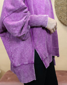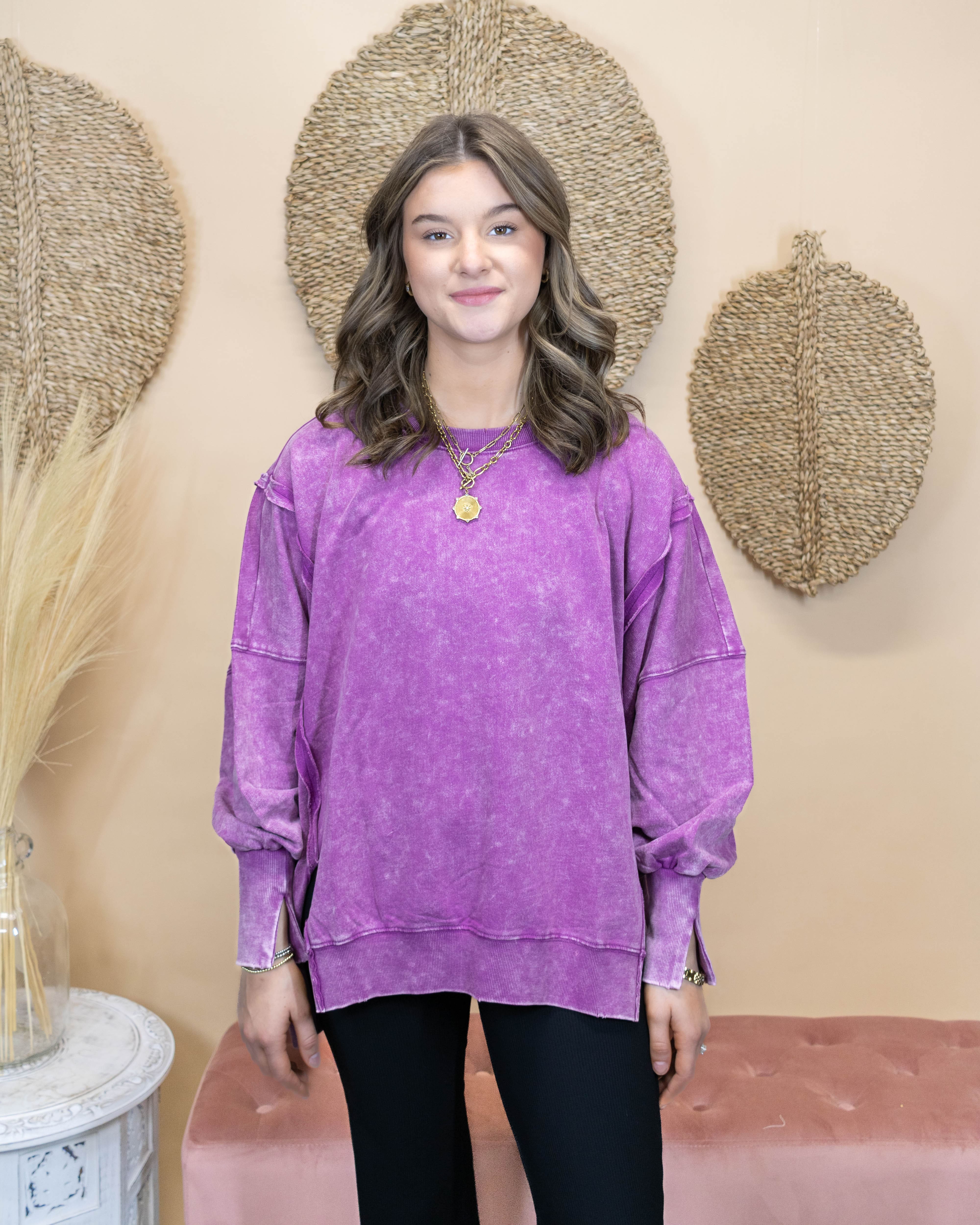Embrace cozy style with the How I Feel Sweatshirt in Light Plum. Featuring wider sleeves and a playful pink hue, this long-sleeve shirt adds a fun, relaxed vibe to your wardrobe. Perfect for lounging or casual outings, its unique cut offers both comfort and a trendy look that stands out effortlessly.