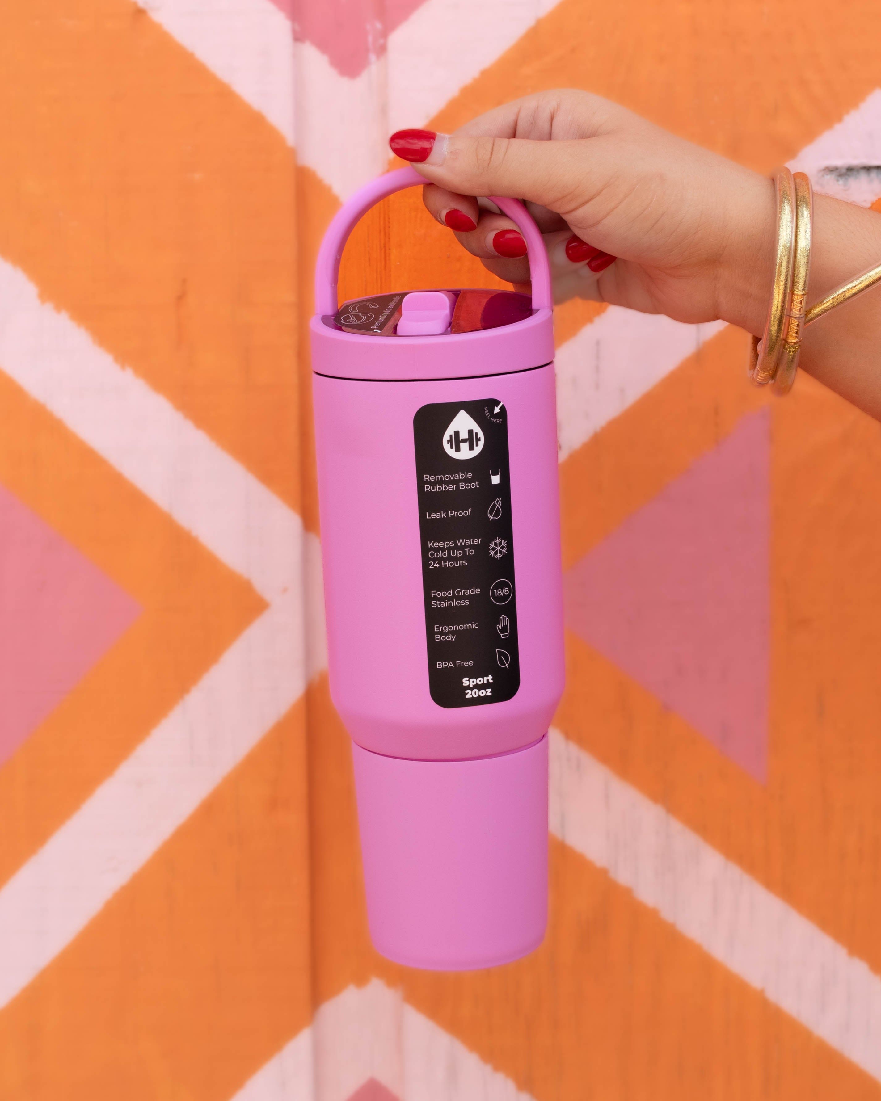 Our most loved Sport Bottle in a 20 oz size. Like the larger Sport Bottle sizes, the 20 oz Sport Bottle was crafted with the active lifestyle in mind. It’s completely leakproof with the straw down and can easily fit in backpacks and cup holders. The ergonomic bucket handle makes it transportable and the perfect bottle for workouts, hikes, or everyday adventures.
