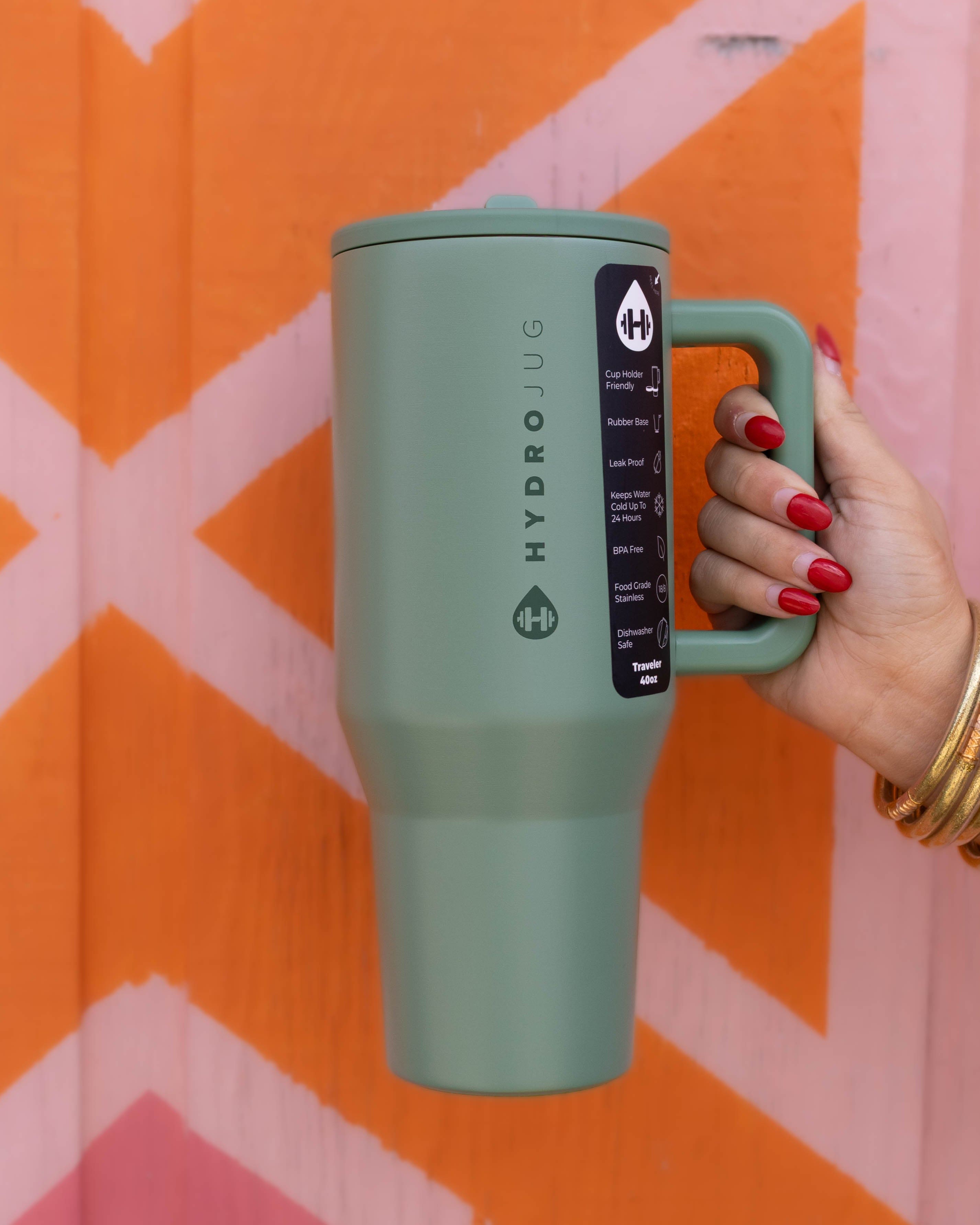 Meet your new favorite 40oz Tumbler. The HydroJug Traveler is completely leakproof with the straw down, cupholder compatible, and has a hygienic circular flip straw for easy sipping. Go anywhere and do anything with this durable, insulated and sleek hydration companion.