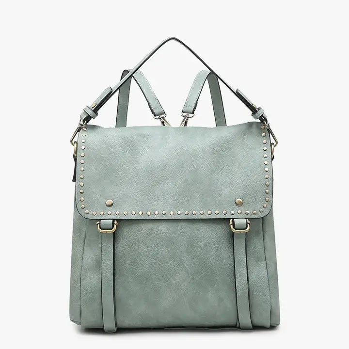 The M2000 Indigo Backpack with Studded Details offers a stylish and functional accessory option for your daily adventures. Designed as a convertible backpack, this bag offers versatility in carrying options, allowing you to wear it as a traditional backpack or convert it into a shoulder bag for different occasions.