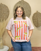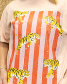 Bring a playful edge to your wardrobe with the Multi Tigers Graphic Tee. Featuring an adorable fun tiger design, this pink t-shirt is accented with charming pink and red stripes for a vibrant look. Its soft fabric ensures all-day comfort, making it perfect for casual outings or relaxed weekends. Stand out effortlessly and express your unique style with this cute, colorful tee.