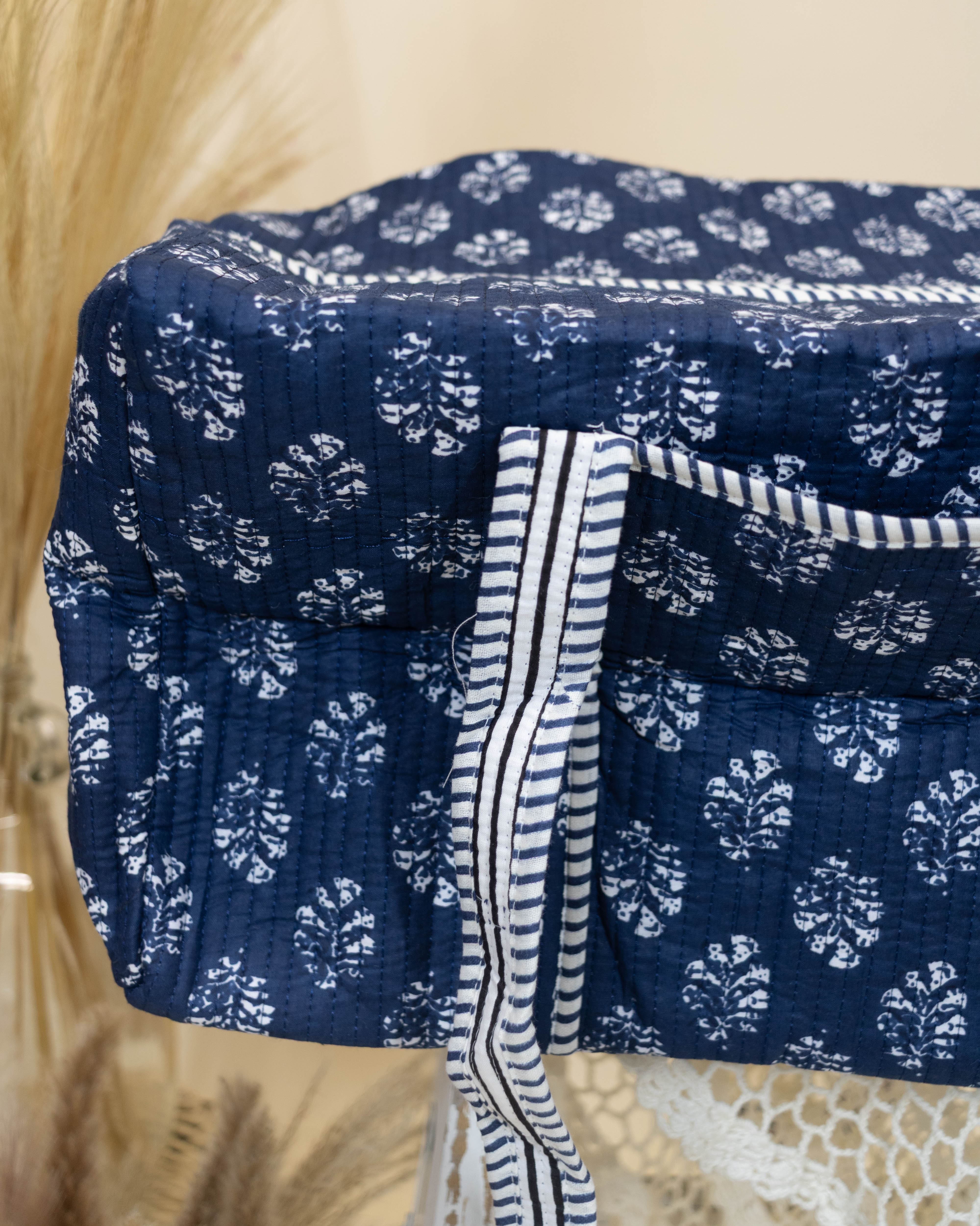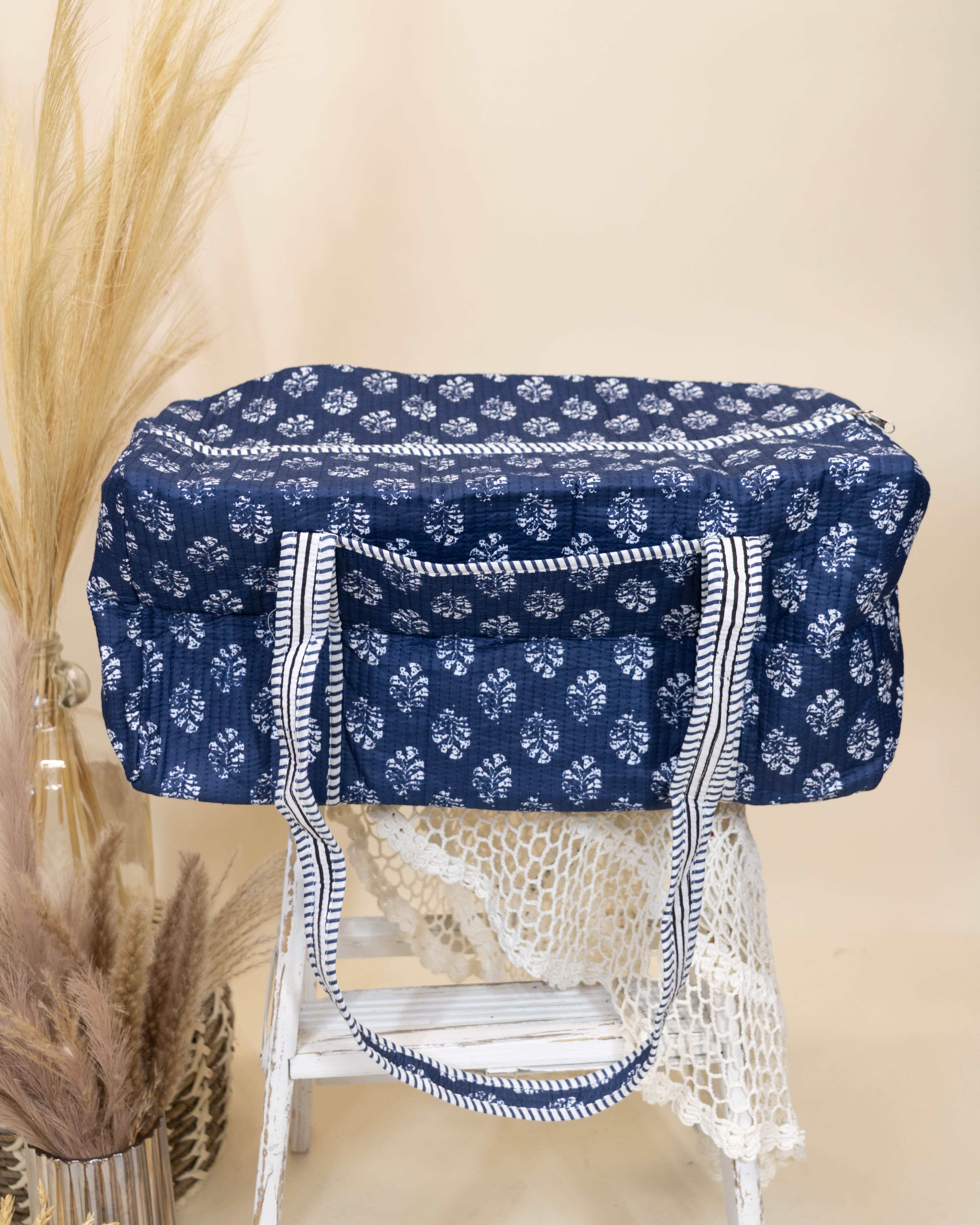 Elevate your travel style with the Nantucket Blooms Floral Quilted Duffle Bag. This spacious navy quilted duffle offers generous storage with a striking floral pattern that adds a touch of elegance. Durable and lightweight, it’s perfect for weekend getaways or daily use, ensuring your essentials stay organized and secure. Combining practicality with charm, this bag makes every trip effortless and fashionable.