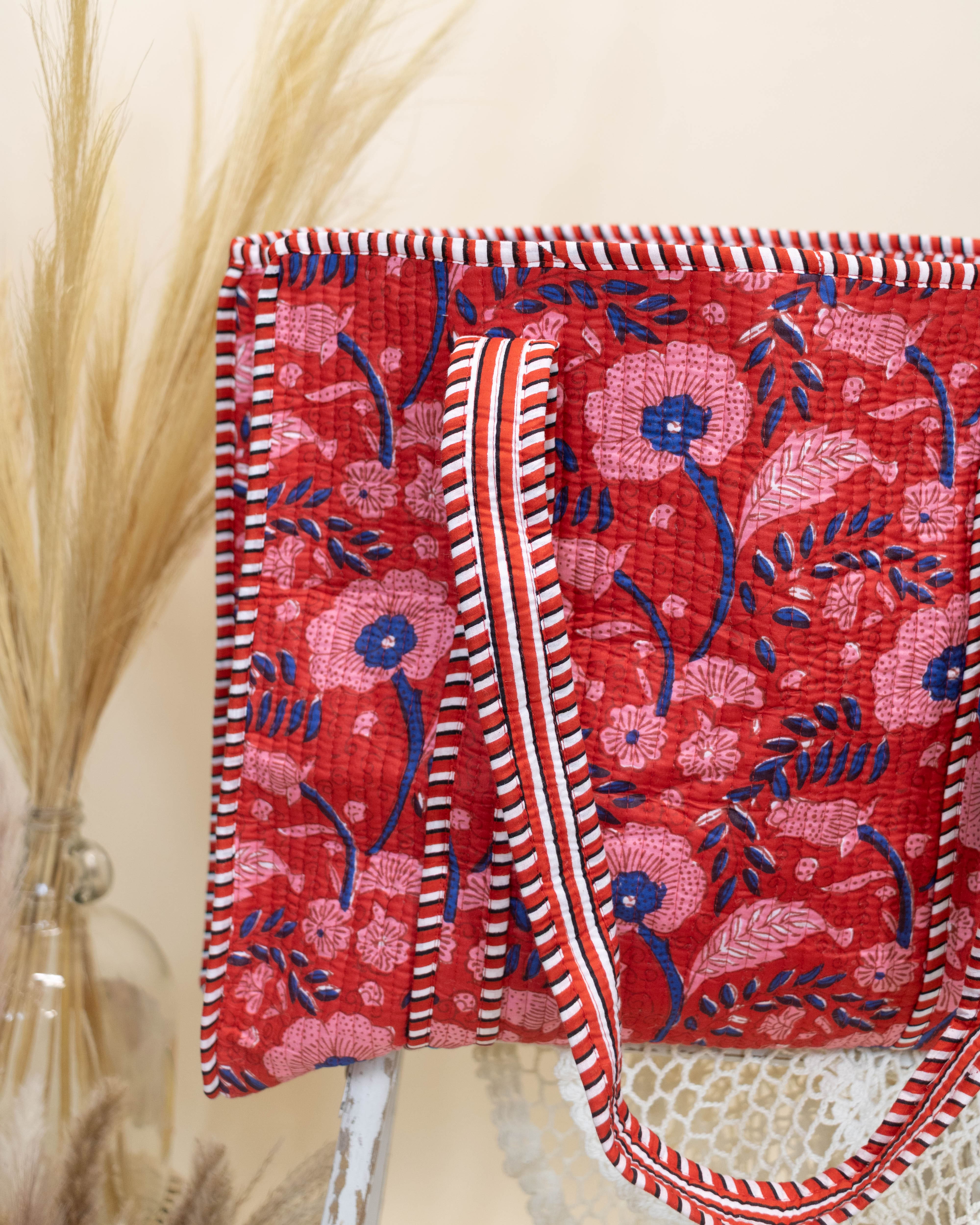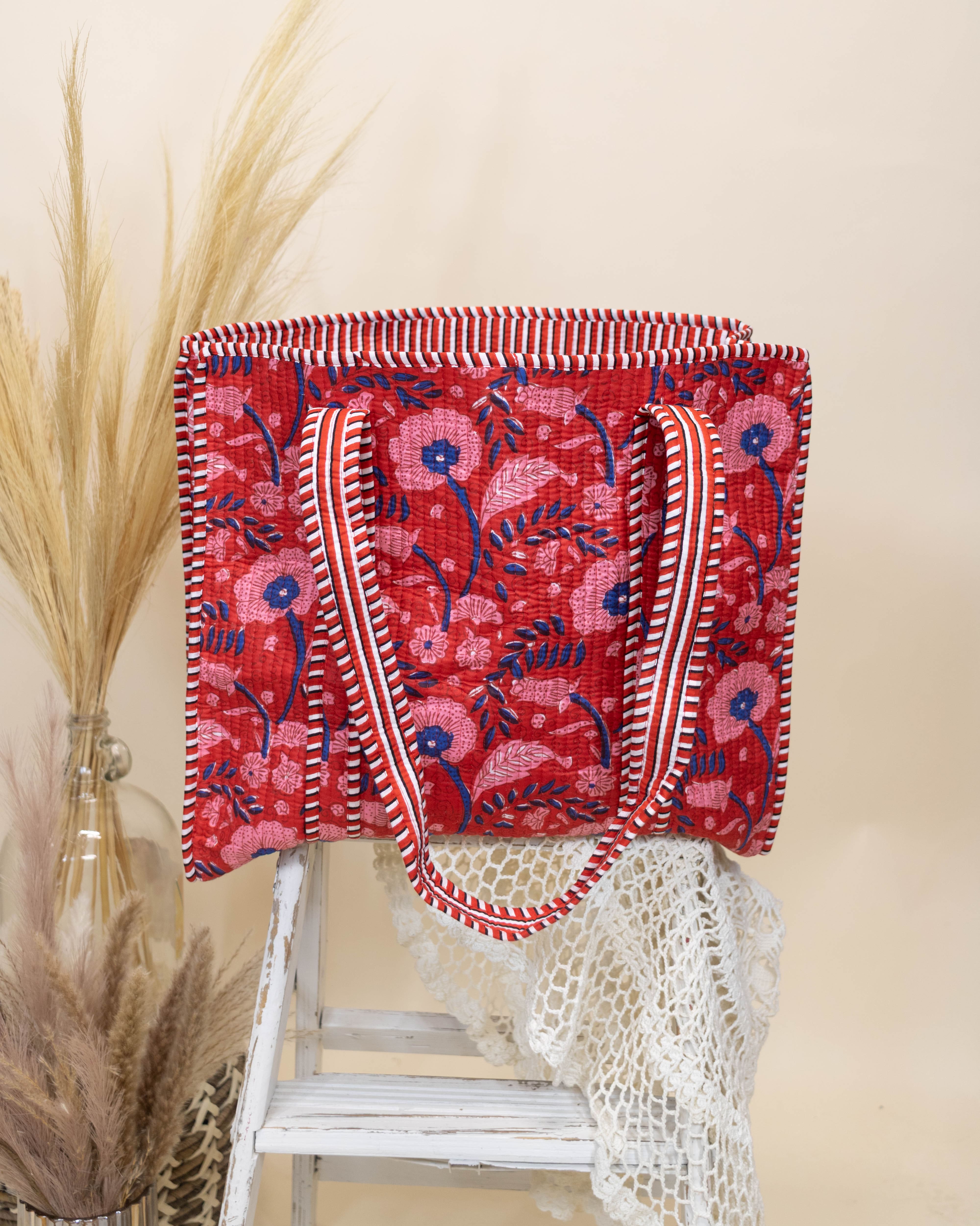 Elevate your style with the Poppy Lane Pink Floral Quilted Tote Bag. Its quilted design offers a blend of softness and structure, while the vibrant pink floral pattern brings a fresh, feminine touch. Spacious and durable, this tote easily carries your essentials for work, errands, or weekend outings, making it both a practical and eye-catching accessory. Make every day brighter and more organized with this charming, versatile tote.