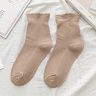 Add a playful touch to your everyday look with these Retro Ruffle Socks in khaki. Their soft tan hue pairs effortlessly with any outfit, while the charming ruffled edges bring a fun, feminine twist. Crafted for comfort and style, these simple socks are perfect for brightening your day without sacrificing ease. Step into casual elegance with every wear.