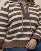 Elevate your style effortlessly with the Right This Way Sweater. This unique collared sweater features subtle stripped detailing that adds sophistication to your casual wardrobe. Crafted for comfort and a flattering fit, it’s perfect for layering or wearing on its own, making every outfit look polished and refined.