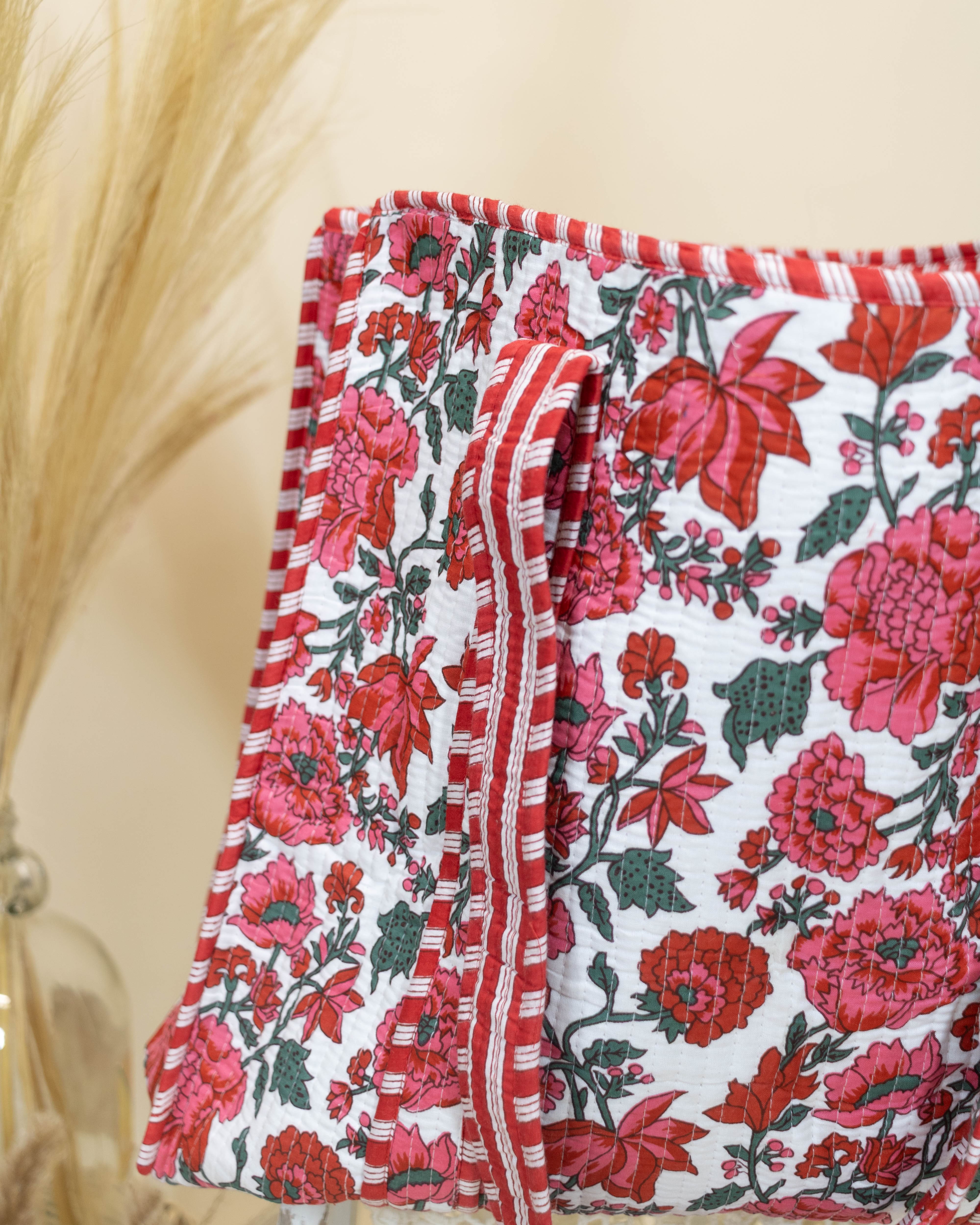 Experience elegance and practicality with the Scarlett Blooms Floral Quilted Tote Bag. Its quilted design offers durability and a soft touch, while the vibrant floral pattern adds a fresh, stylish flair to any outfit. Spacious enough to carry your essentials, this tote seamlessly blends functionality with a feminine look, making it the perfect accessory for everyday use or special outings. Elevate your style and stay organized with this must-have quilted tote.