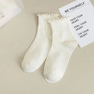 Elevate your everyday style with these solid off-white socks featuring a delicate ruffle detail. Perfect for adding a subtle touch of charm to any outfit, they combine comfort with a playful edge. These socks are an effortless way to refresh your wardrobe with a feminine flair that stands out.