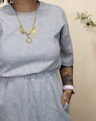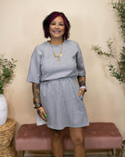 Designed for comfort and style, the Stay True Dress combines a chic light grey color with buttery soft material. Featuring an elastic cinch under the bust line and convenient pockets, this dress offers both a flattering fit and practicality. Perfect for any occasion with its crew neckline, stay true to your fashion sense with this versatile piece.
