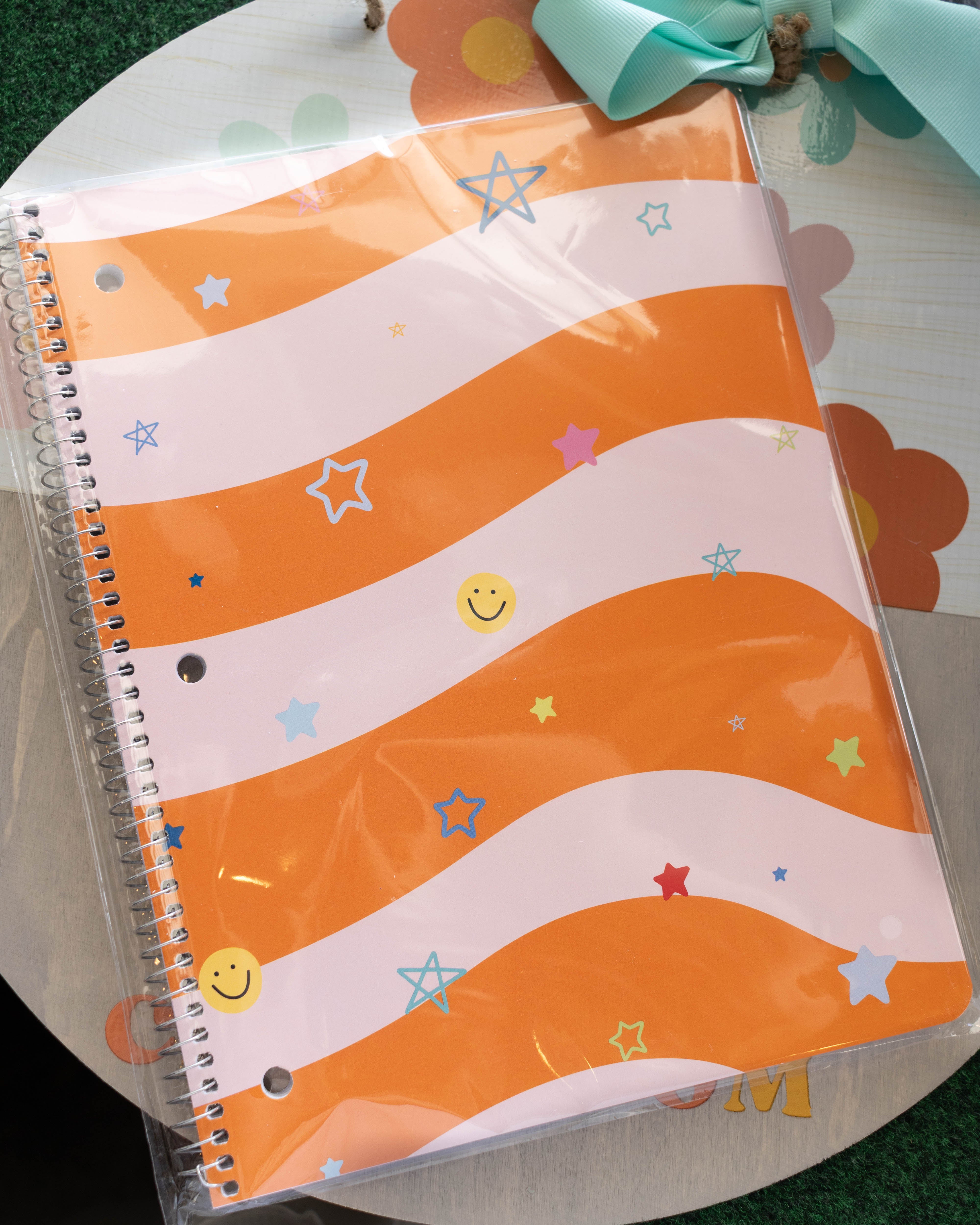 Navigate your thoughts with style using our Wavy Icons Spiral Notebook. Featuring a dynamic design of wavy colors, stars, and smiley faces, this notebook adds a happy spin to your everyday note-taking. Gift this notebook to your favorite teacher, educator, student, or school supply enthusiast!