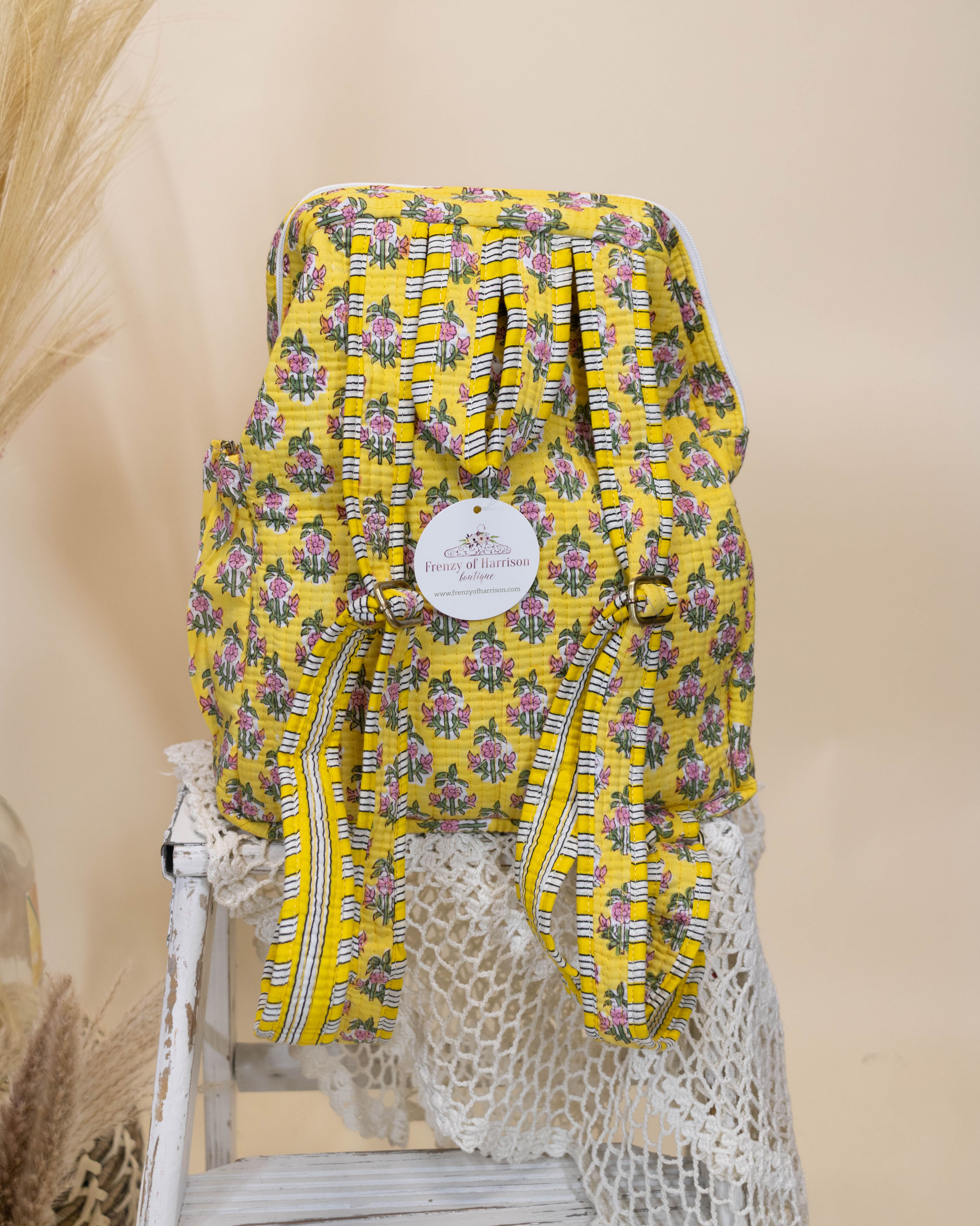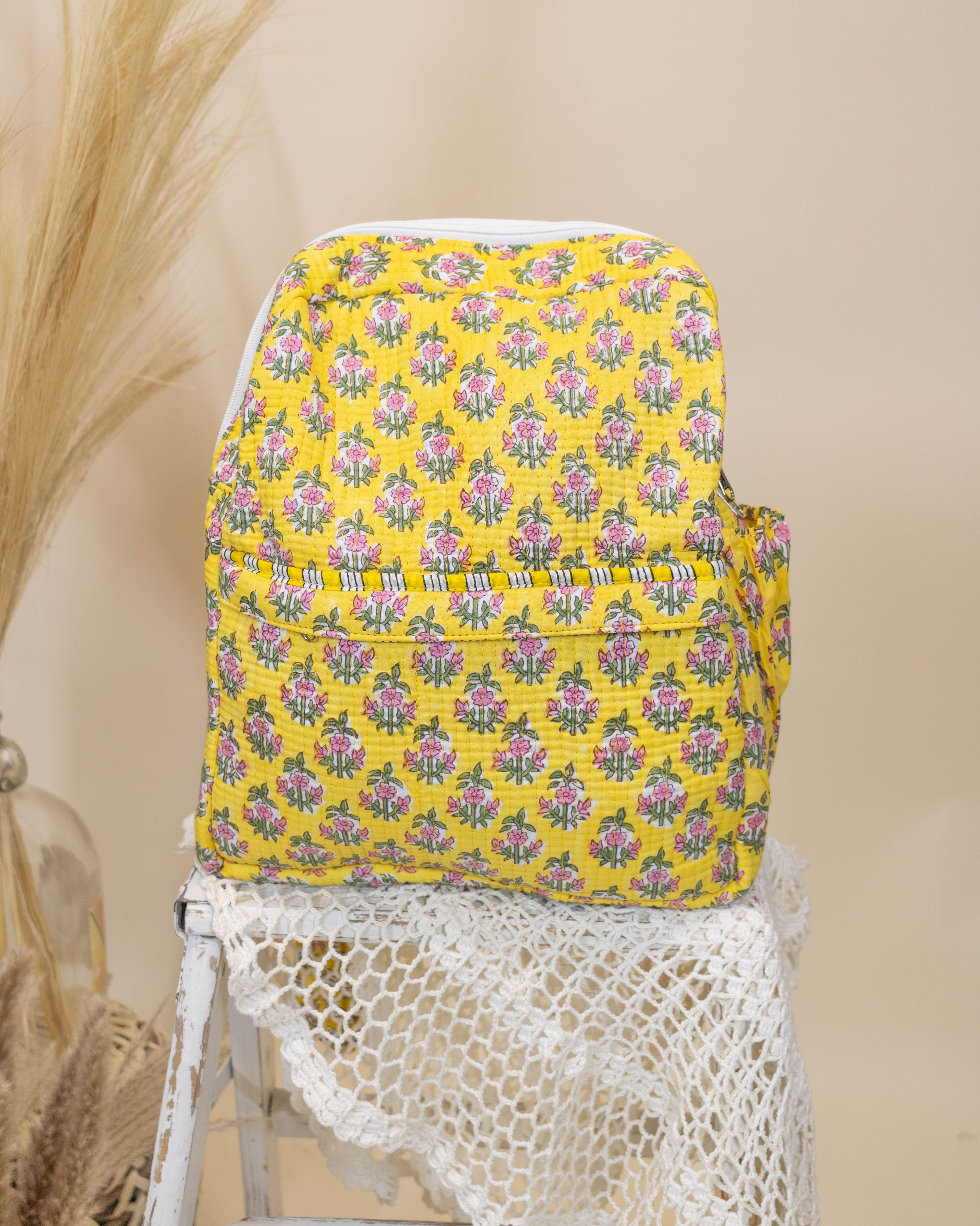 Brighten your everyday adventures with the Winona Yellow Floral Quilted Backpack. Its quilted design combines style and durability, while the vibrant yellow floral pattern adds a cheerful touch to any outfit. Lightweight yet spacious, this backpack keeps your essentials organized and easy to carry, making it perfect for school, travel, or casual outings. Choose a unique accessory that stands out and enhances your look with both function and flair.