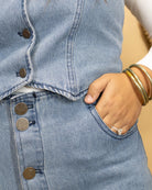 Get ready to start something fun and versatile with our Start of Something Denim Skirt Set! This quirky denim skirt set is perfect for any occasion, letting you express your unique style with ease. A must-have addition to any wardrobe for those who don't take themselves too seriously!