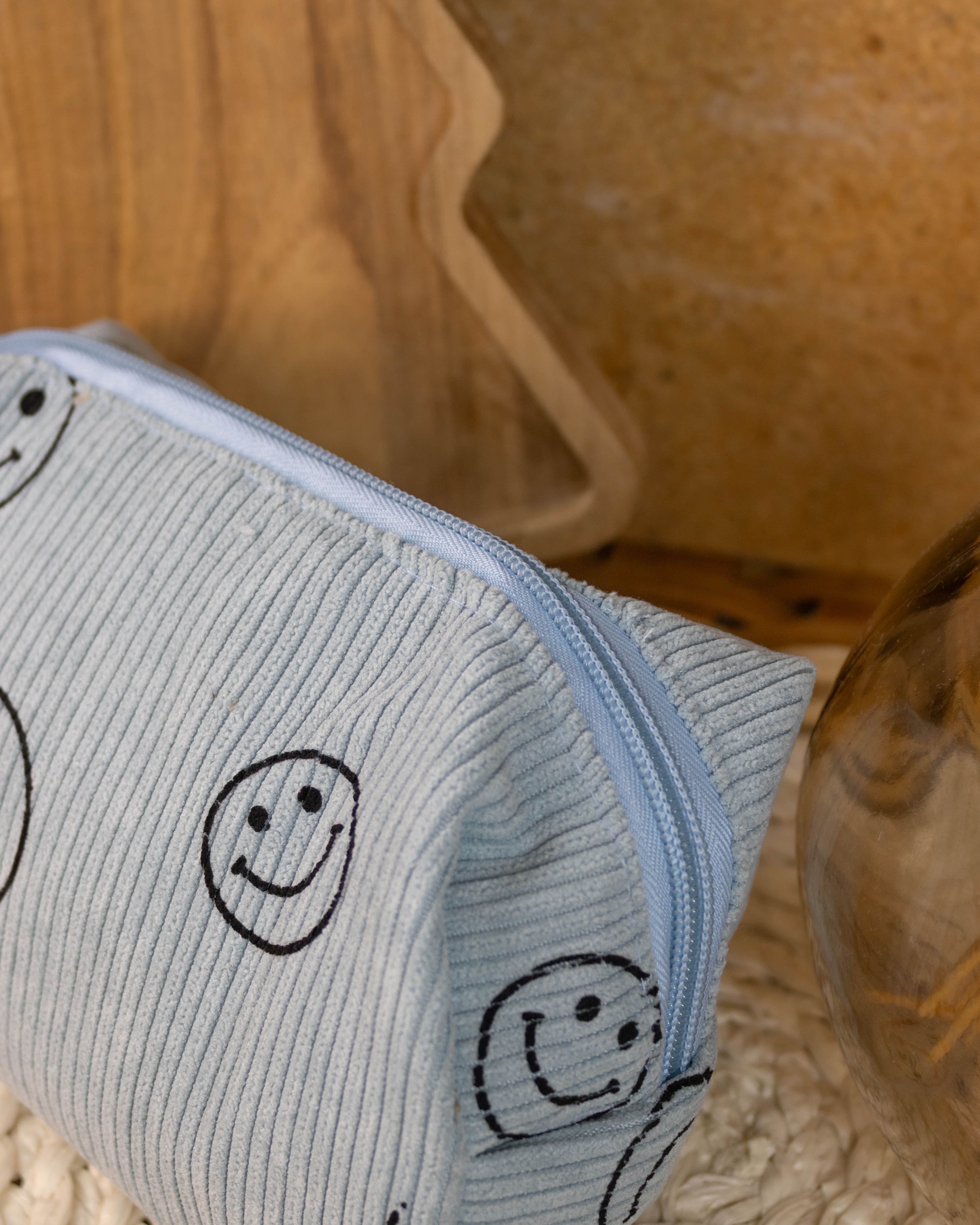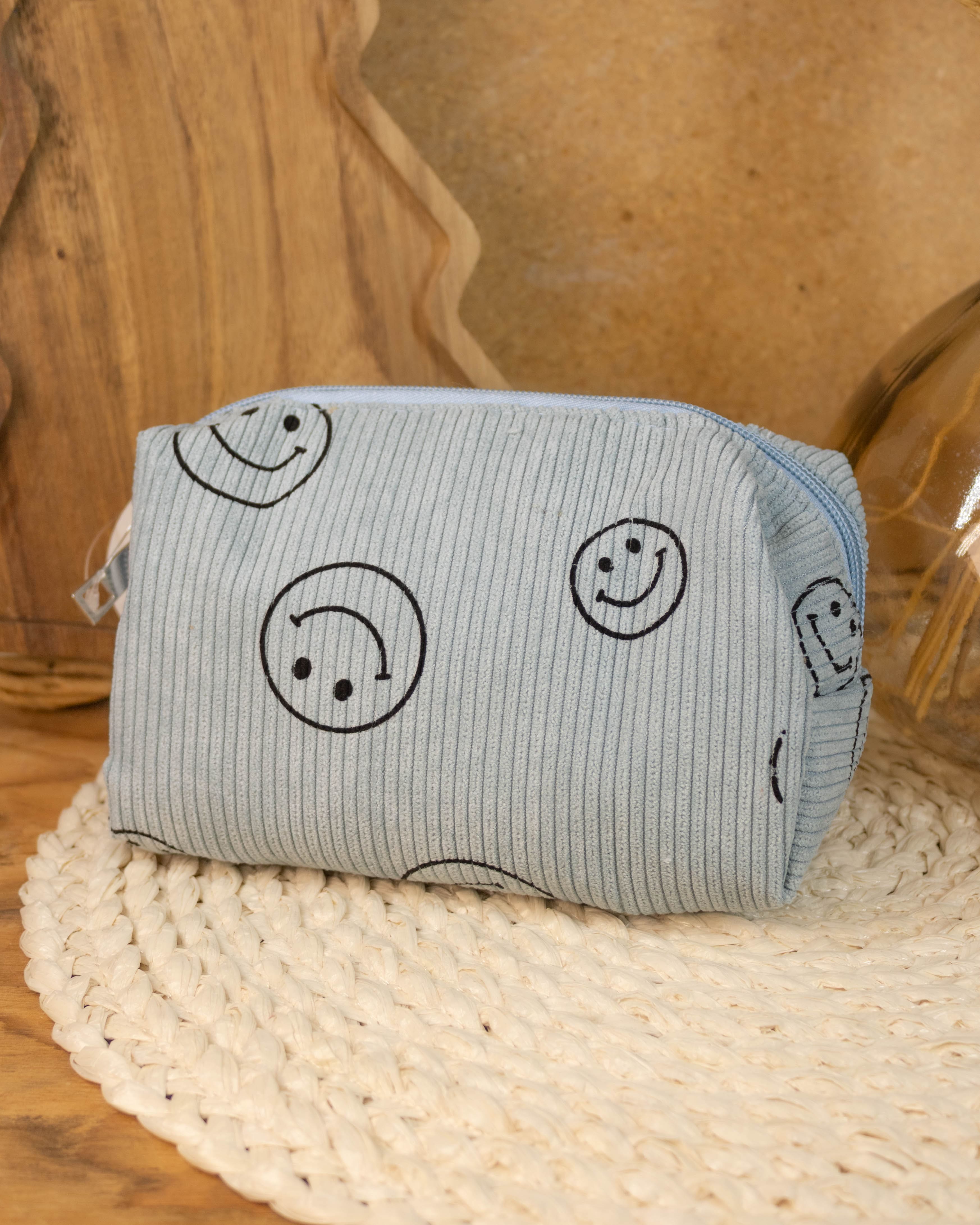 Smiley Makeup Cosmetic Pouch- Blue