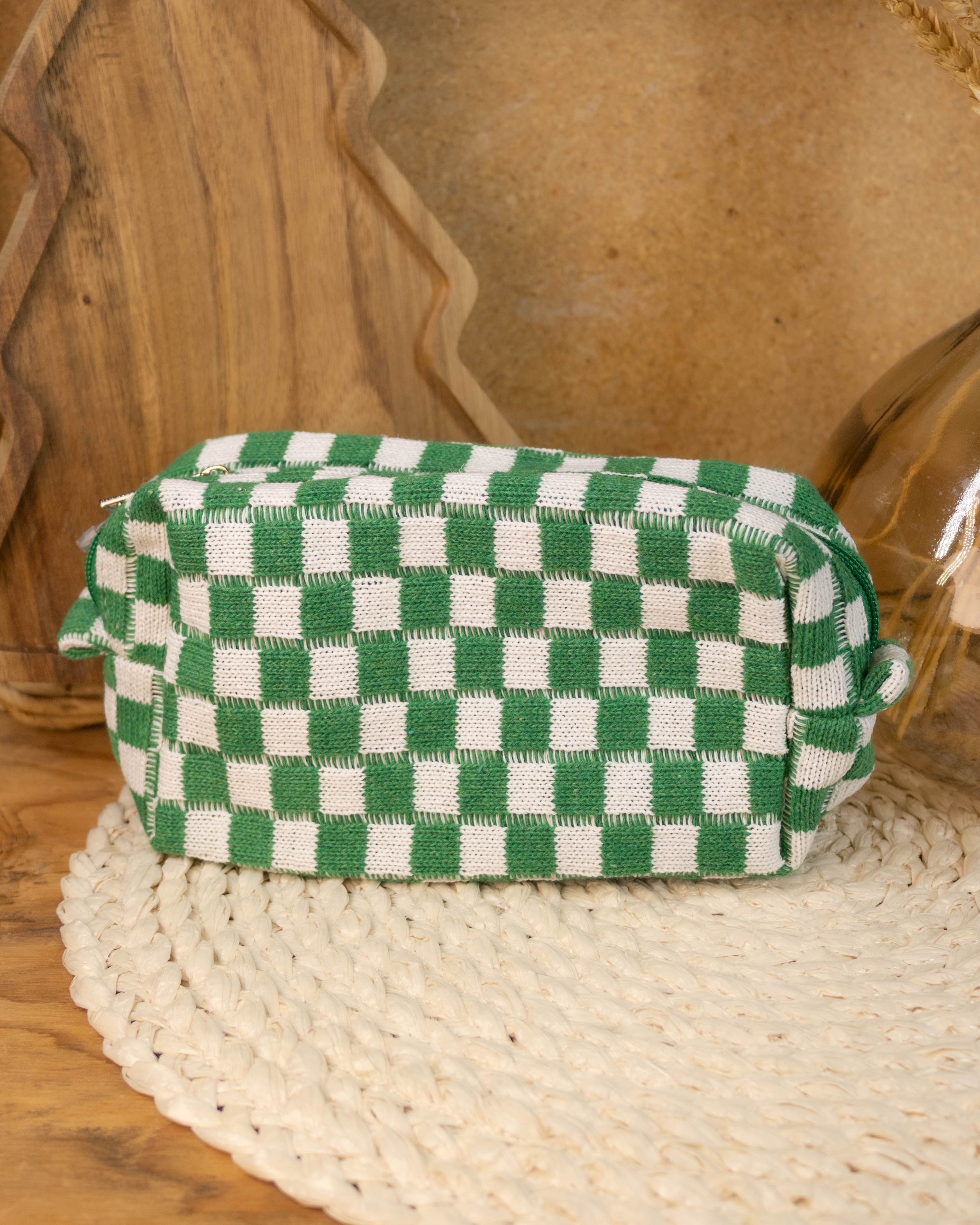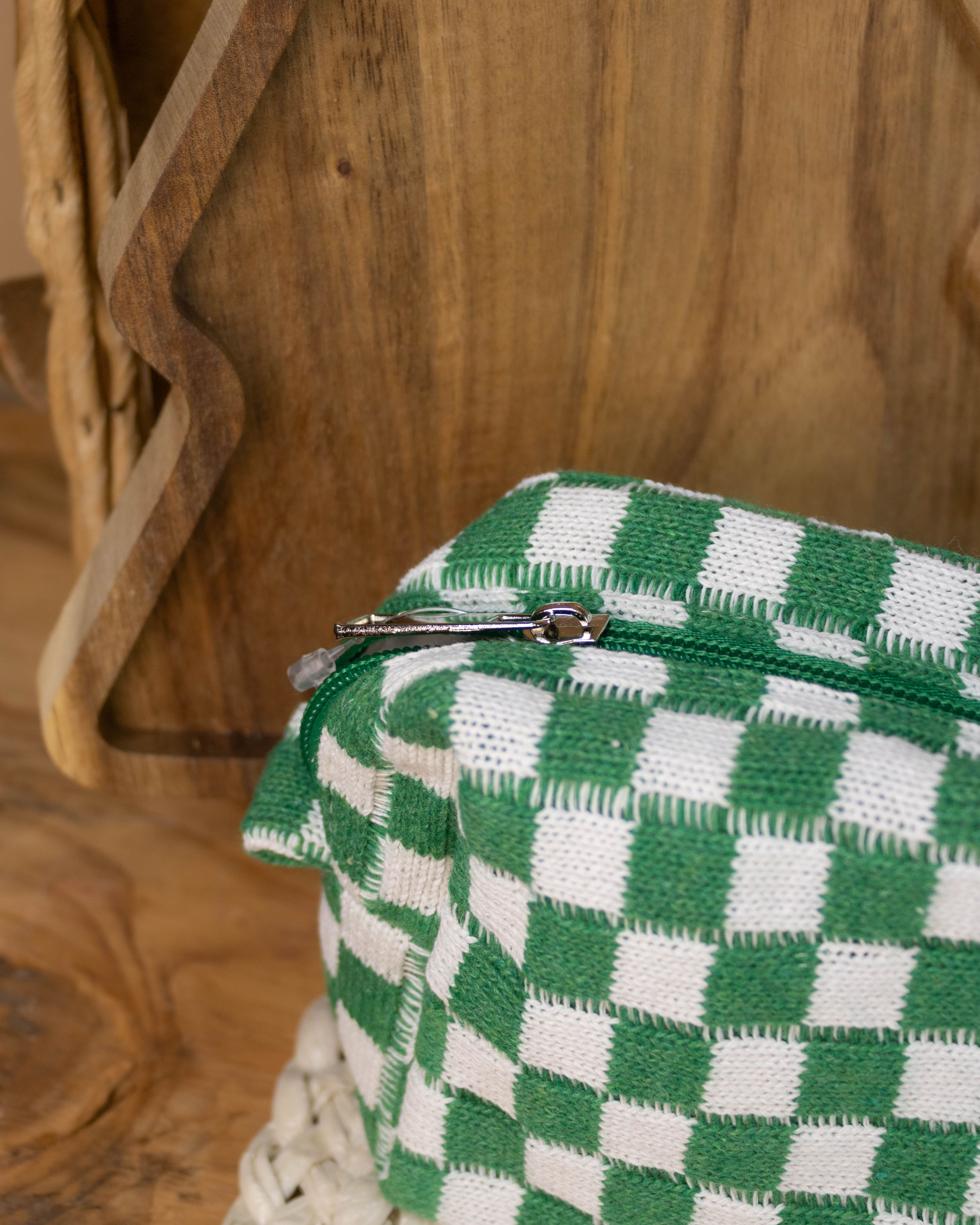 Checker Makeup Cosmetic Pouch- Green