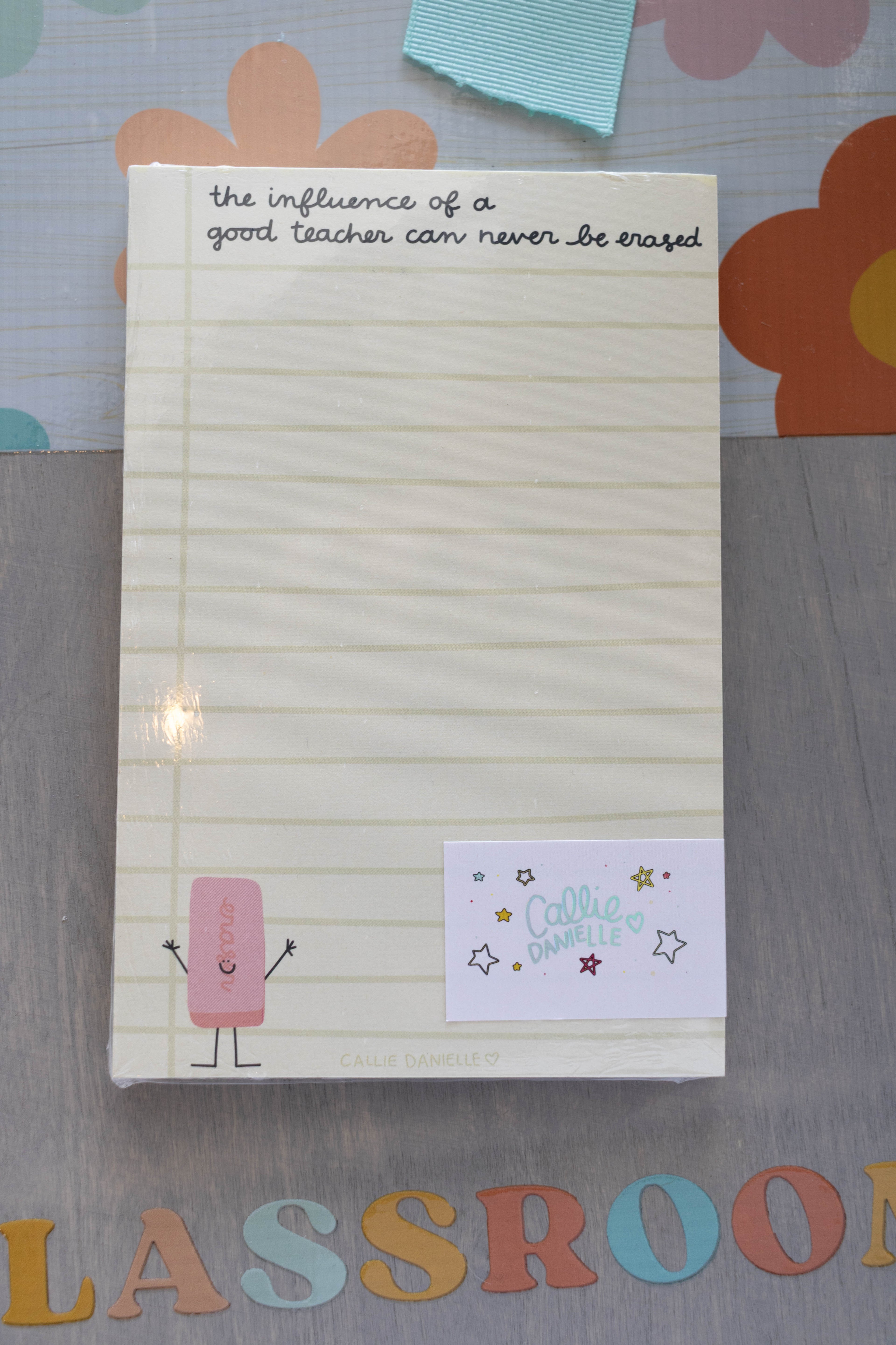 Stay inspired and organized with the Influence Of A Good Teacher Notepad. Featuring the heartfelt quote, "The influence of a good teacher can never be erased," this notepad is a perfect tribute to the educators who make a lasting impact on their students. Ideal for teachers, students, or anyone who appreciates the power of education, this notepad combines functionality with sentiment. Whether you're jotting down lesson plans, to-do lists, or personal notes, the sturdy pages and spacious design provide ample room for all your thoughts. The elegant design makes it a wonderful teacher appreciation gift or a meaningful addition to any desk. •Features: 52 sheets, lined •Size: 4×6"
